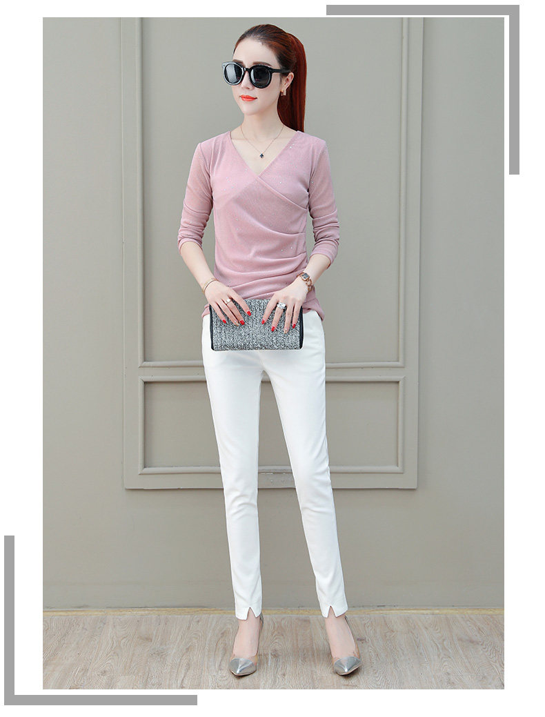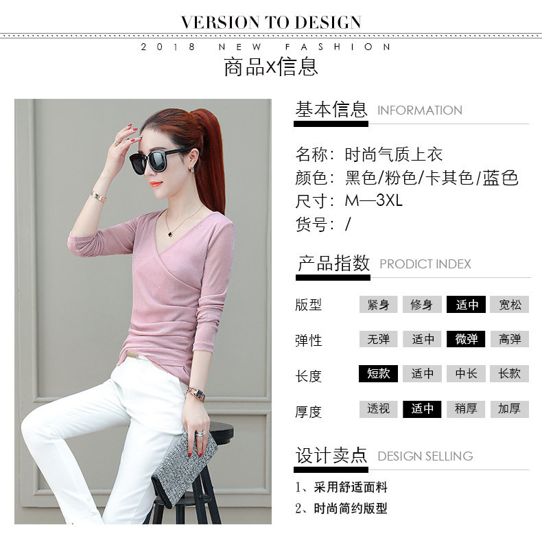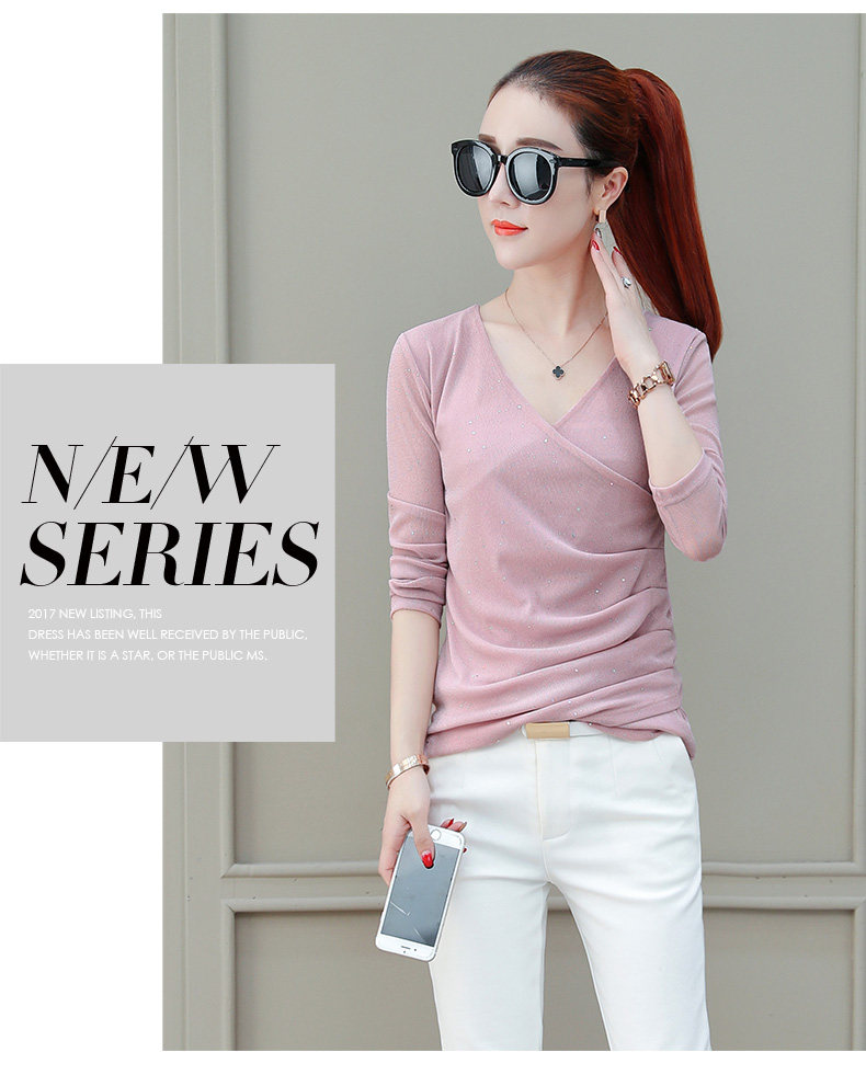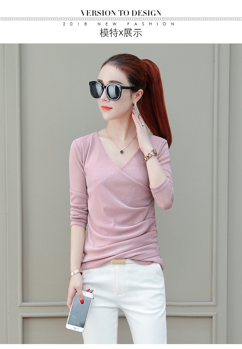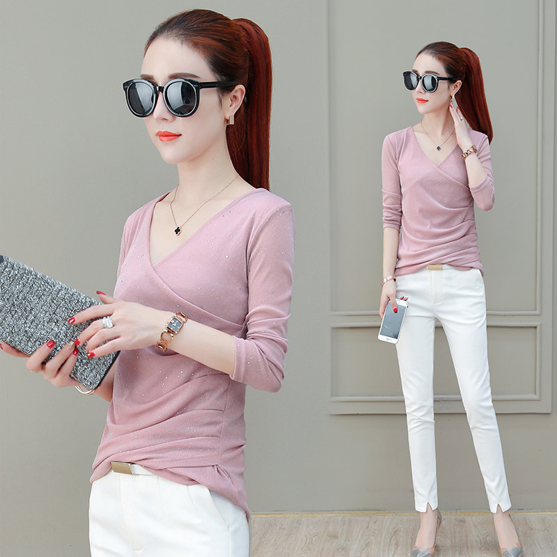 Футболка, весенний базовый приятный телу лонгслив, V-образный вырез, коллекция 2021, в корейском стиле