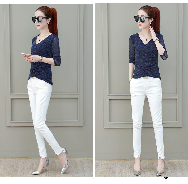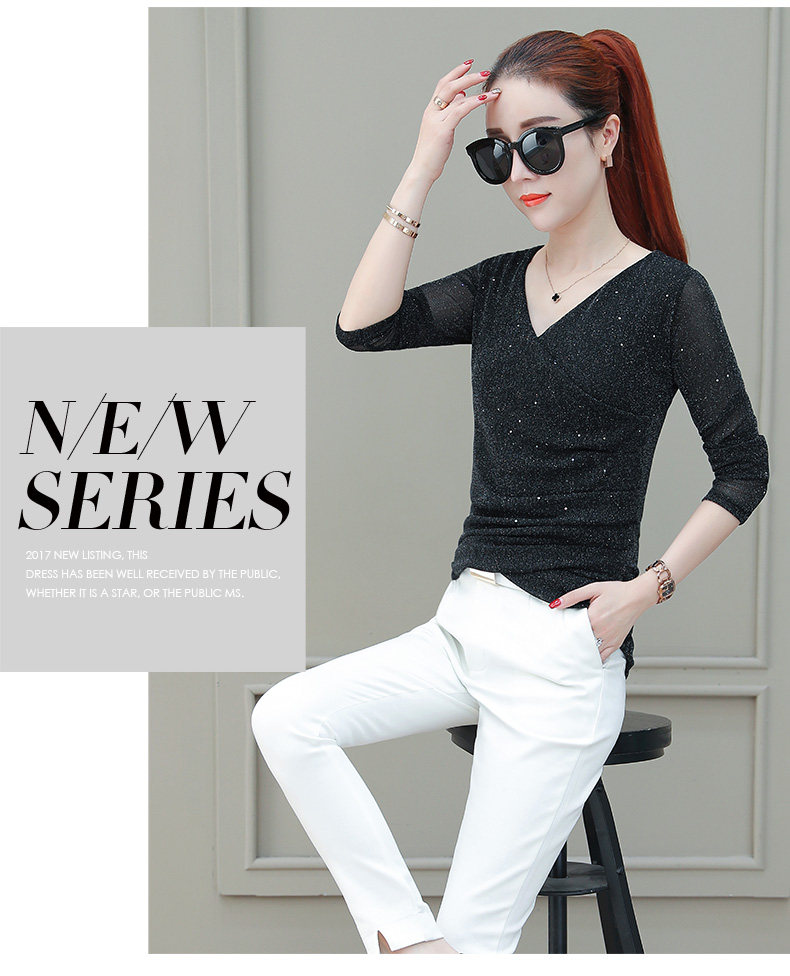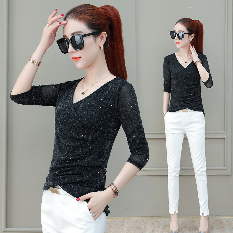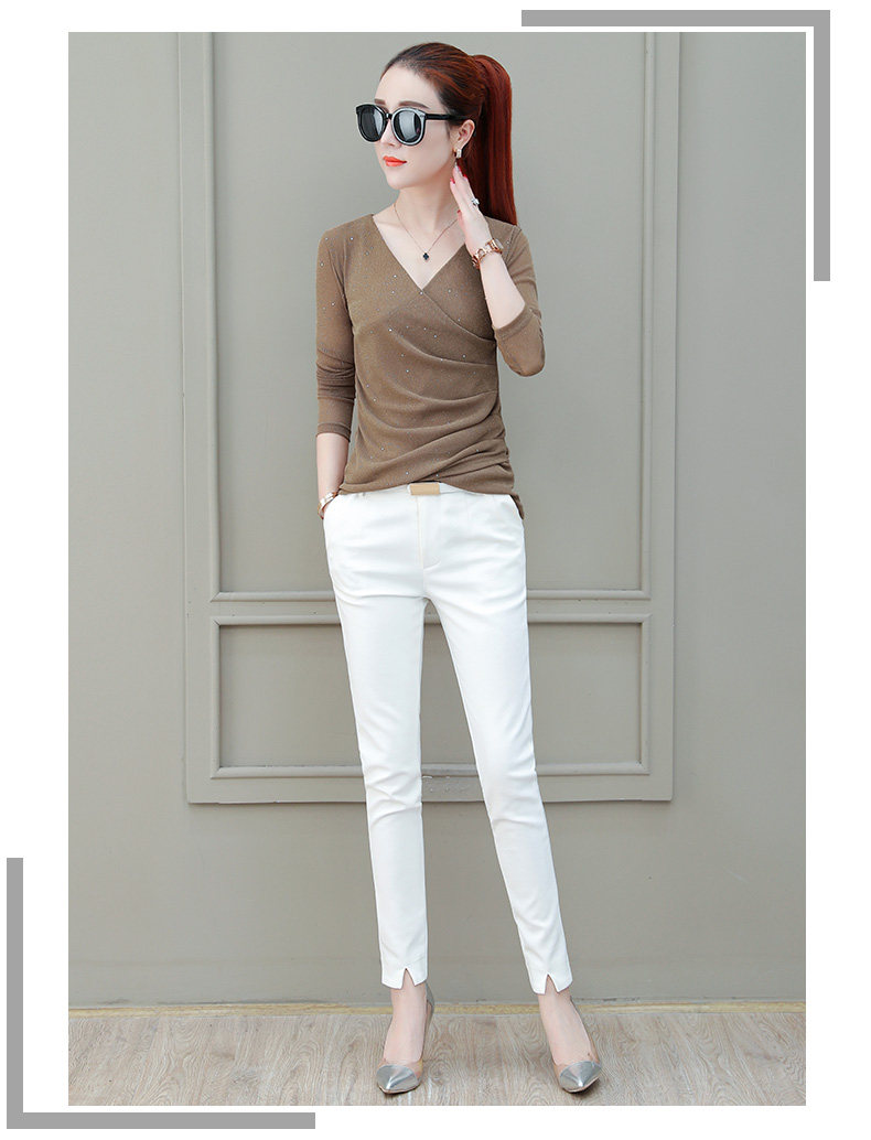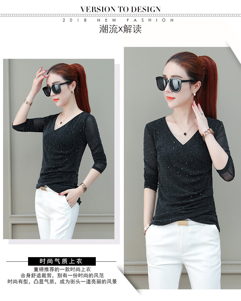 Футболка, весенний базовый приятный телу лонгслив, V-образный вырез, коллекция 2021, в корейском стиле