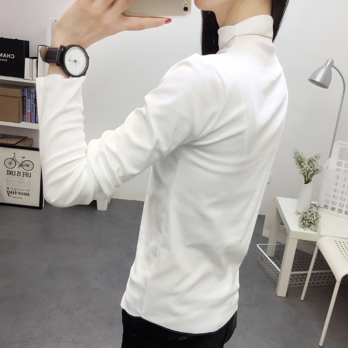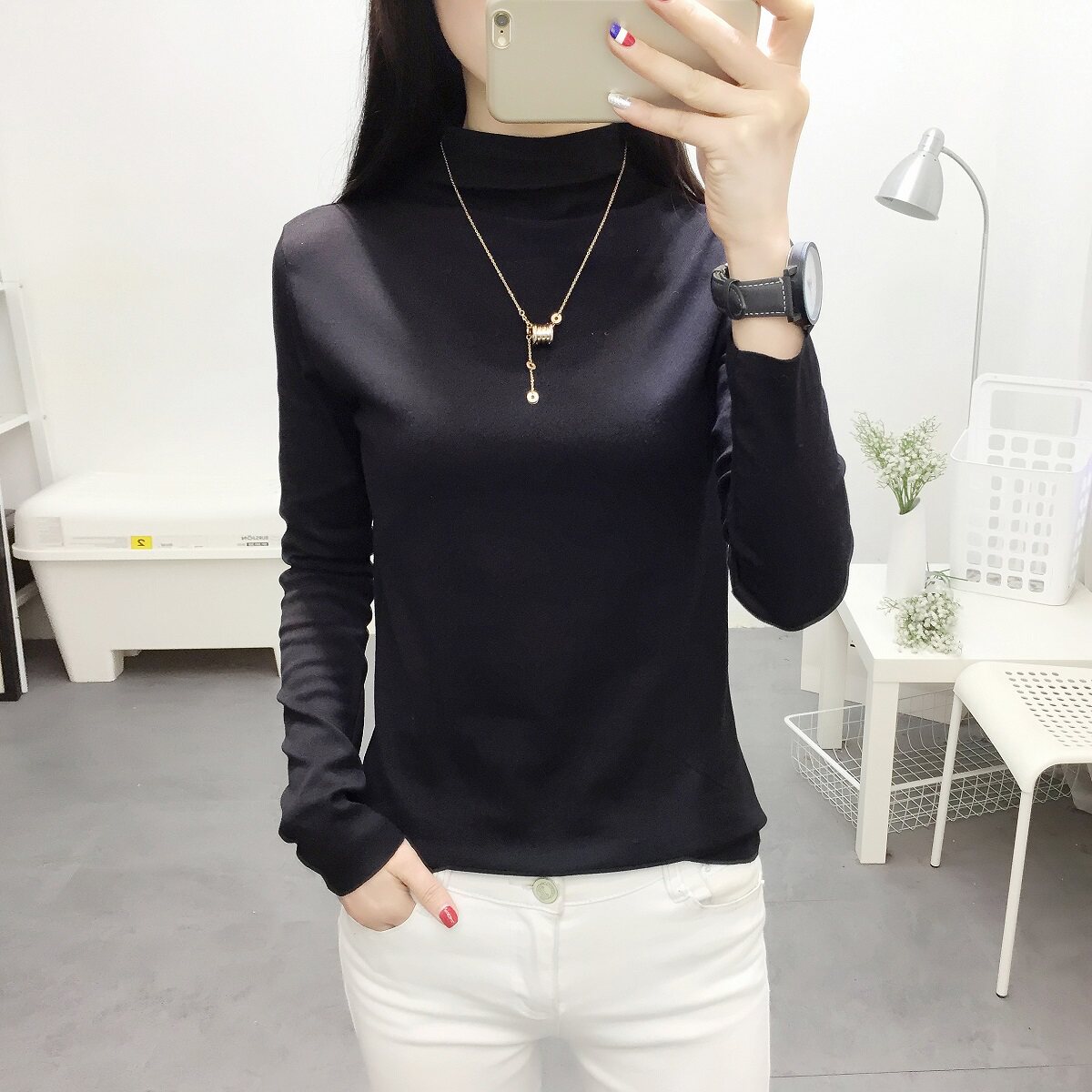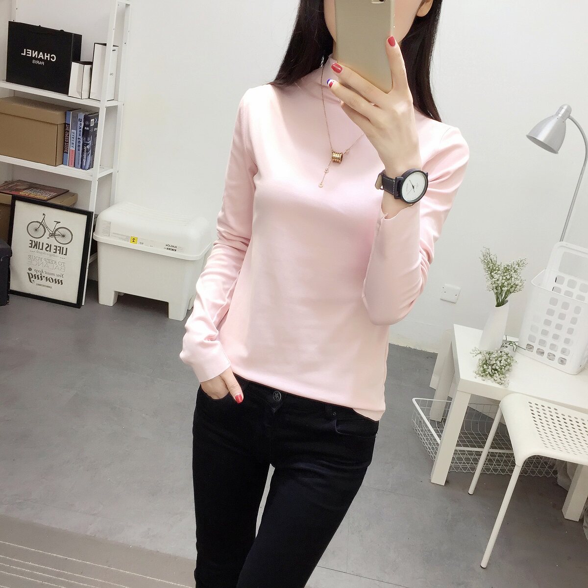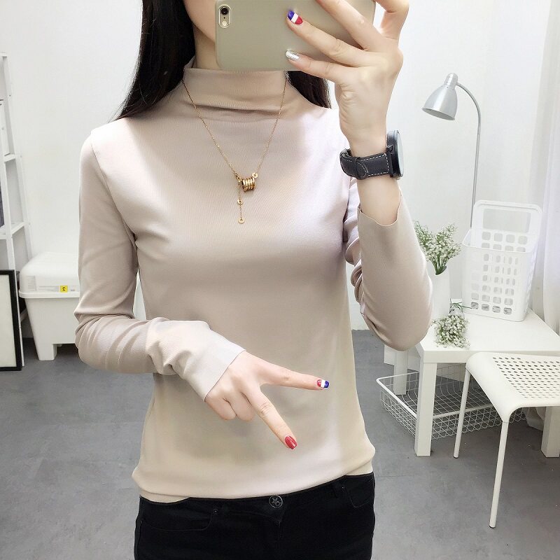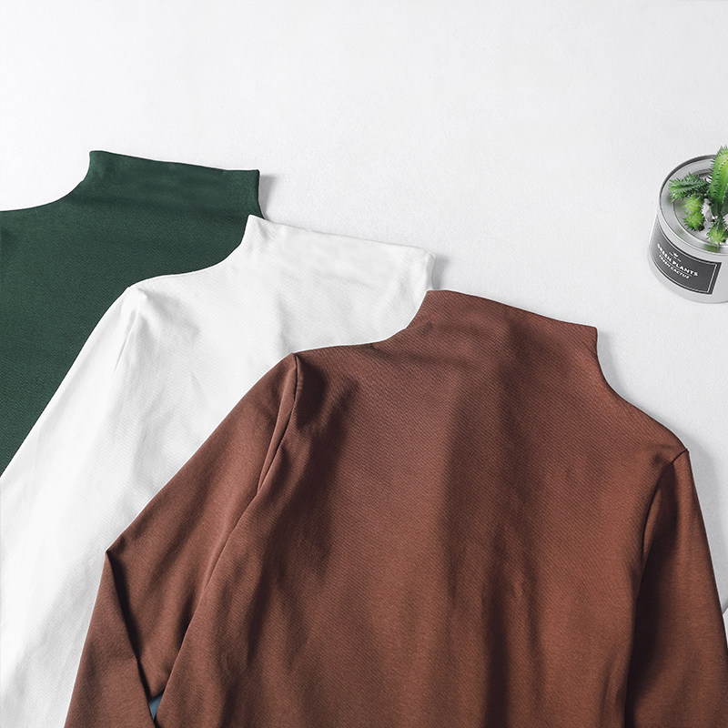Однотонный цветной базовый приятный телу приталенный лонгслив для школьников, коллекция 2022, высокий воротник, в корейском стиле