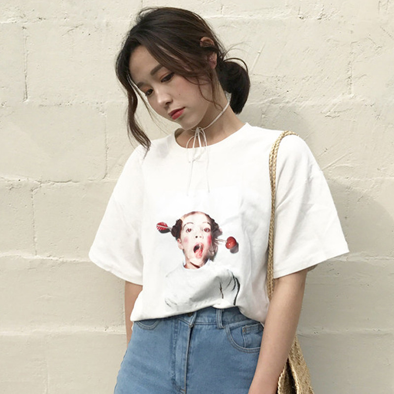 Милая модная футболка с коротким рукавом для школьников, в корейском стиле, свободный крой, коллекция 2021