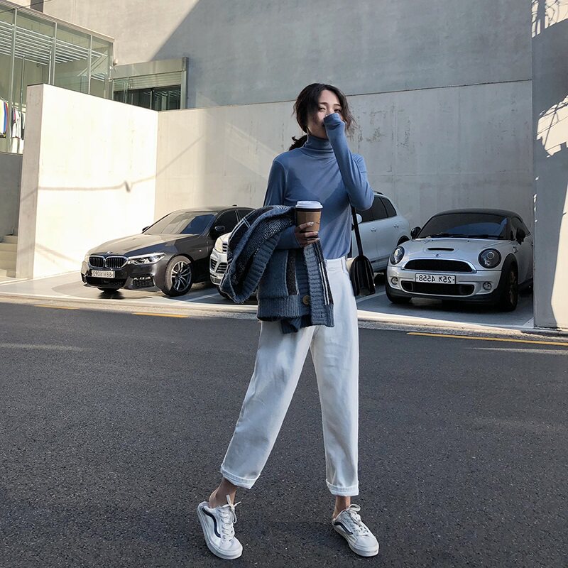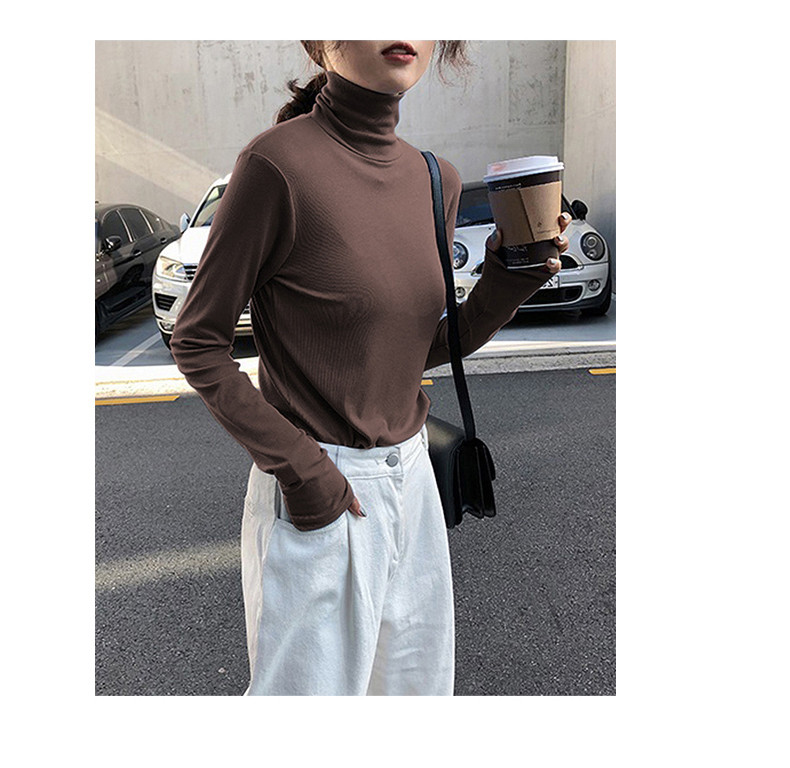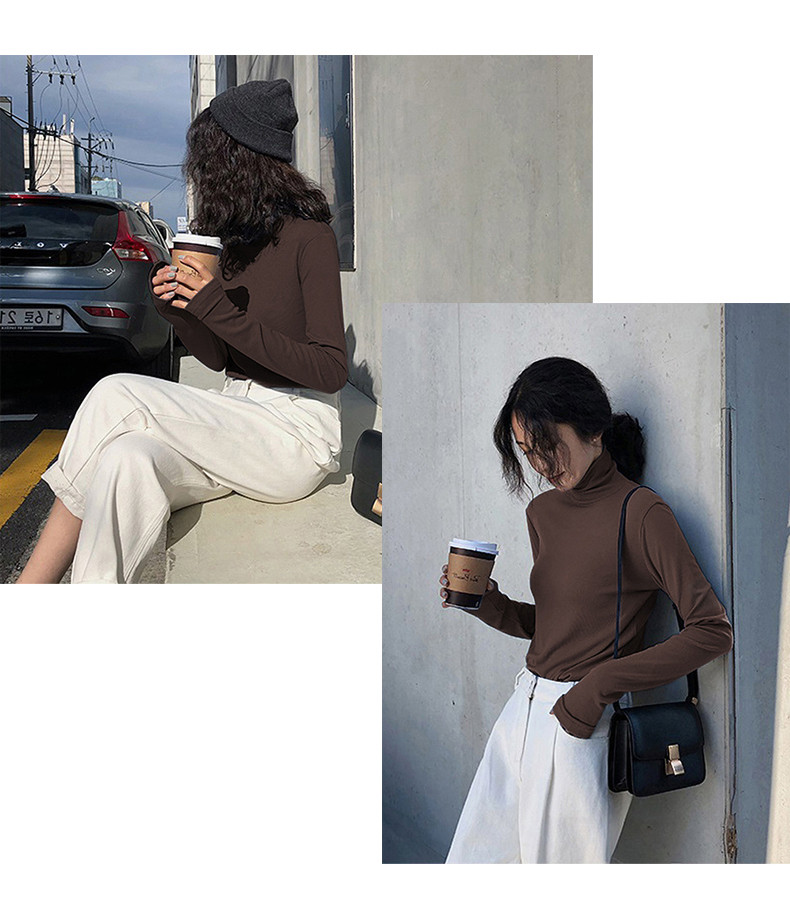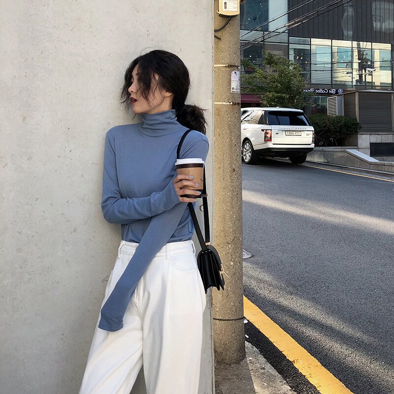 Модный базовый приятный телу зимний лонгслив, в обтяжку, высокий воротник, коллекция 2021, в корейском стиле