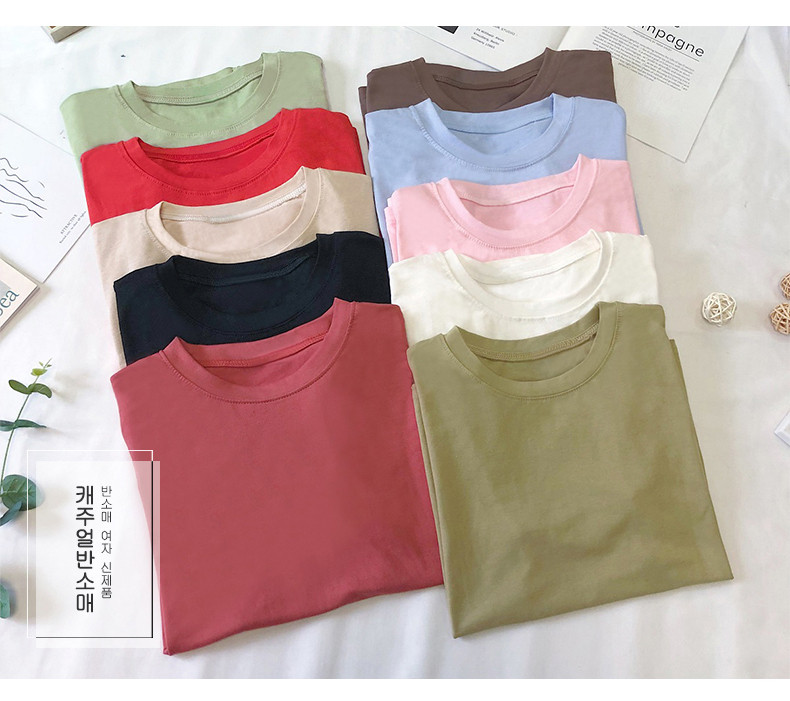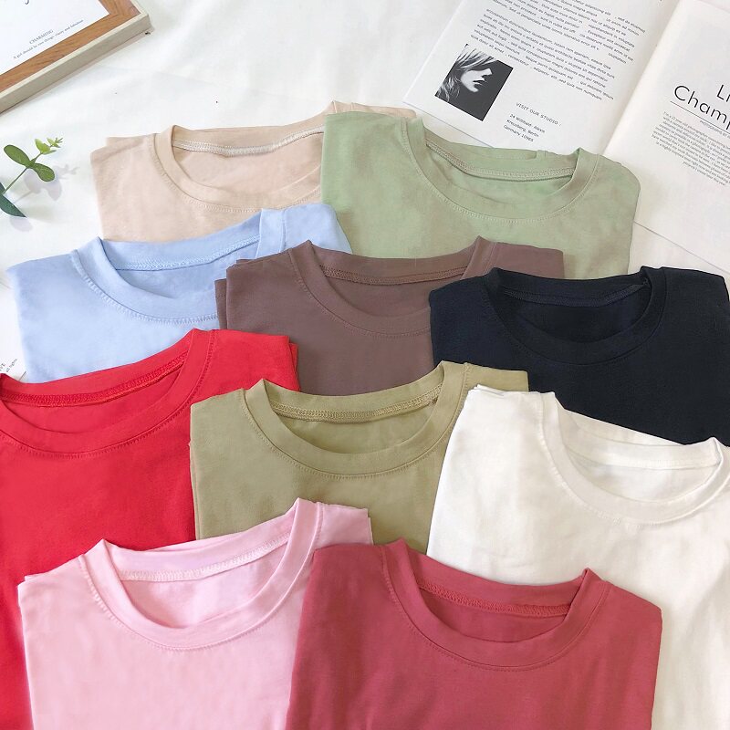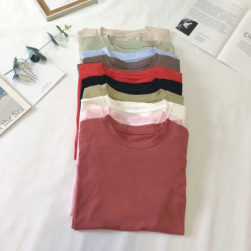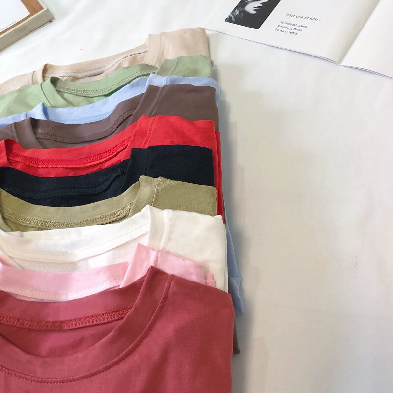 Летняя однотонная базовая приятная телу футболка с коротким рукавом для школьников, в корейском стиле