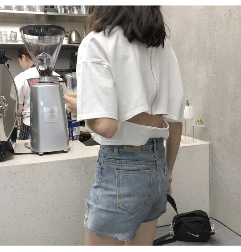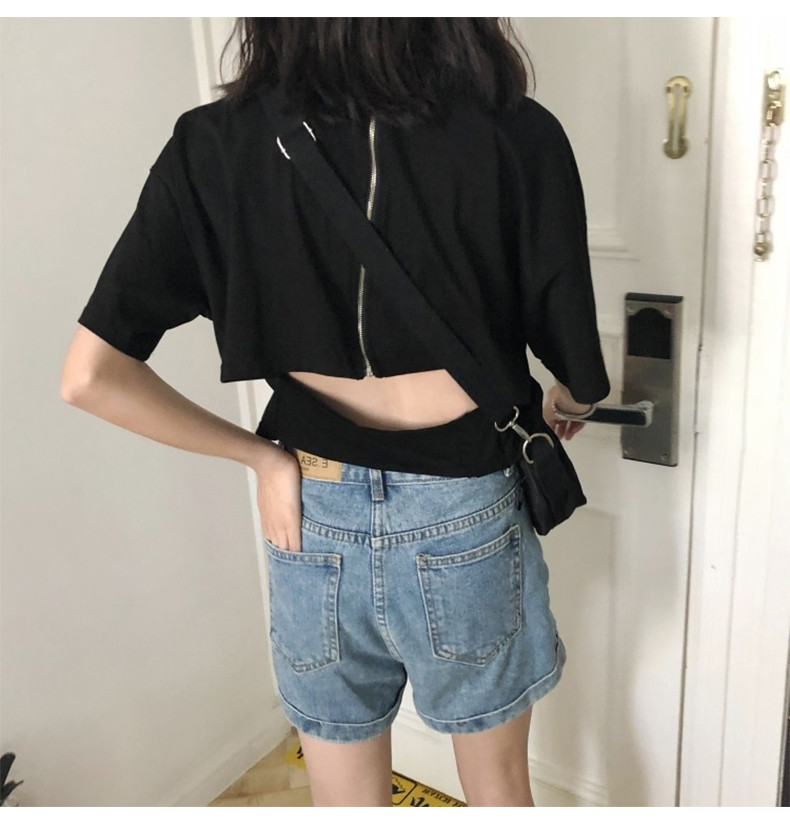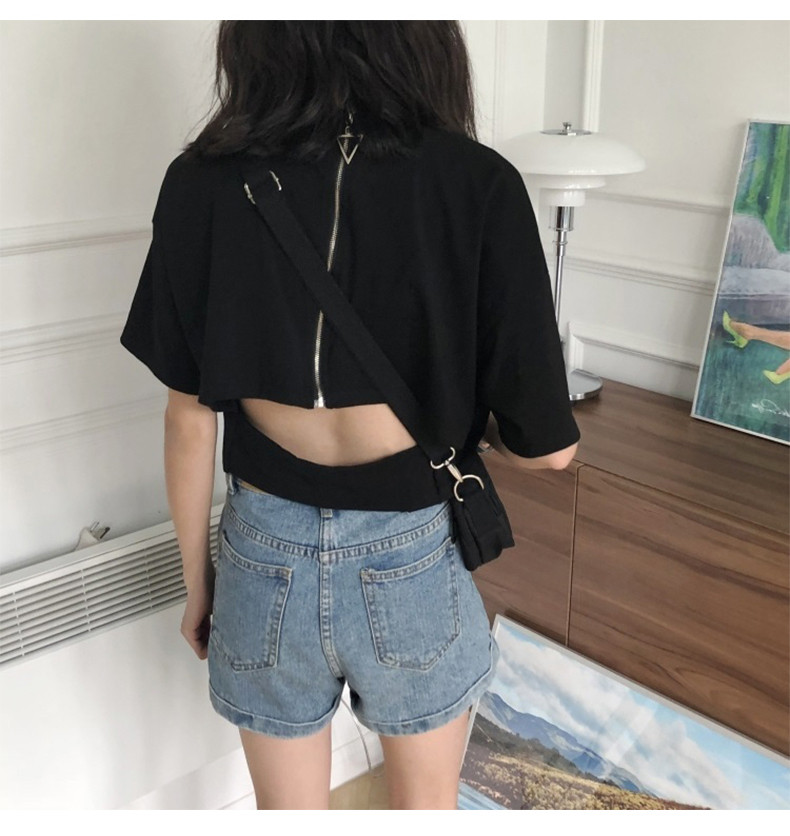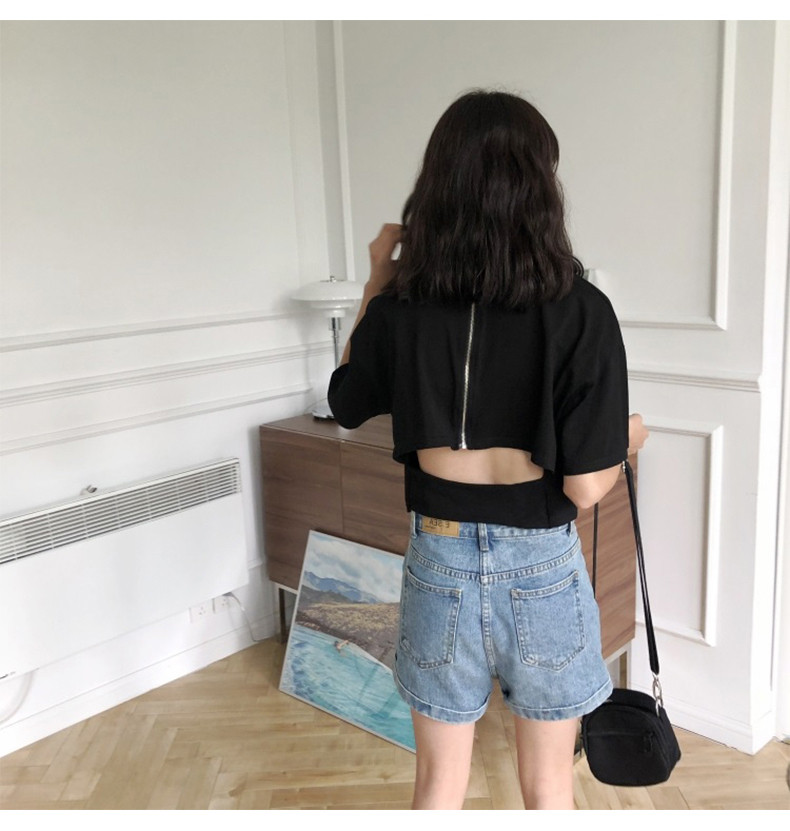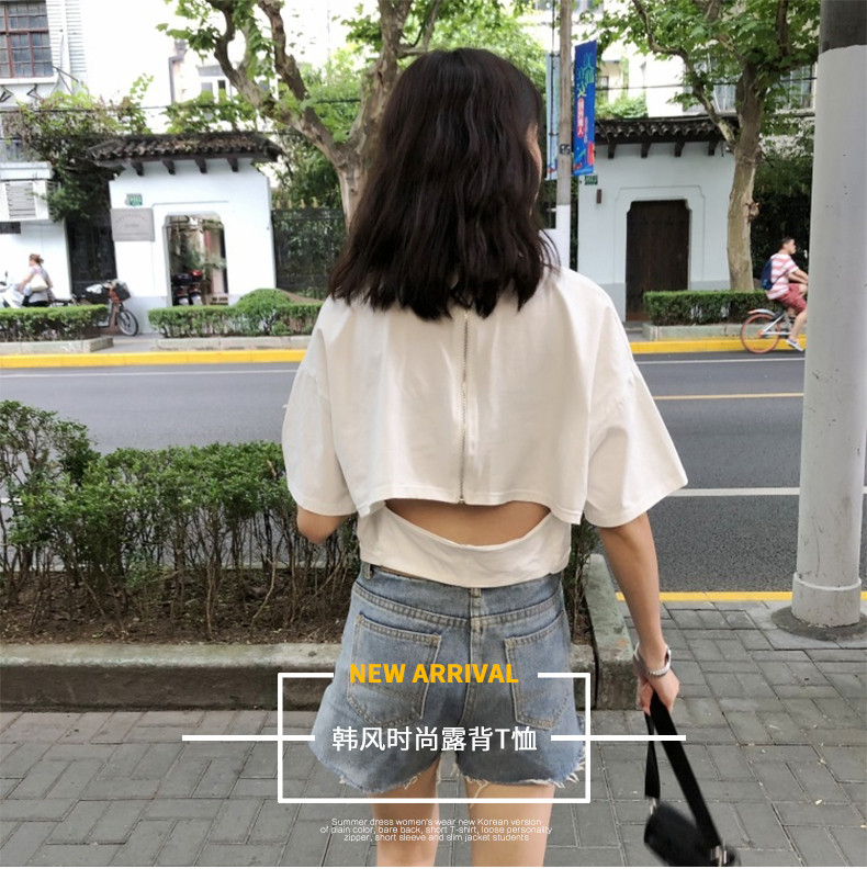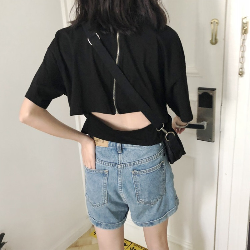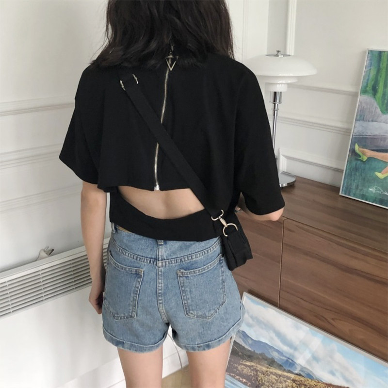 Футболка с коротким рукавом, сексуальная летняя одежда с молнией, популярно в интернете, коллекция 2021, в корейском стиле