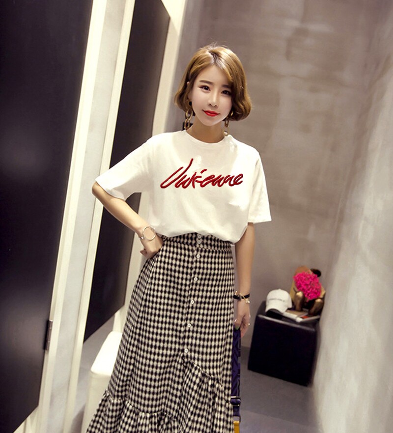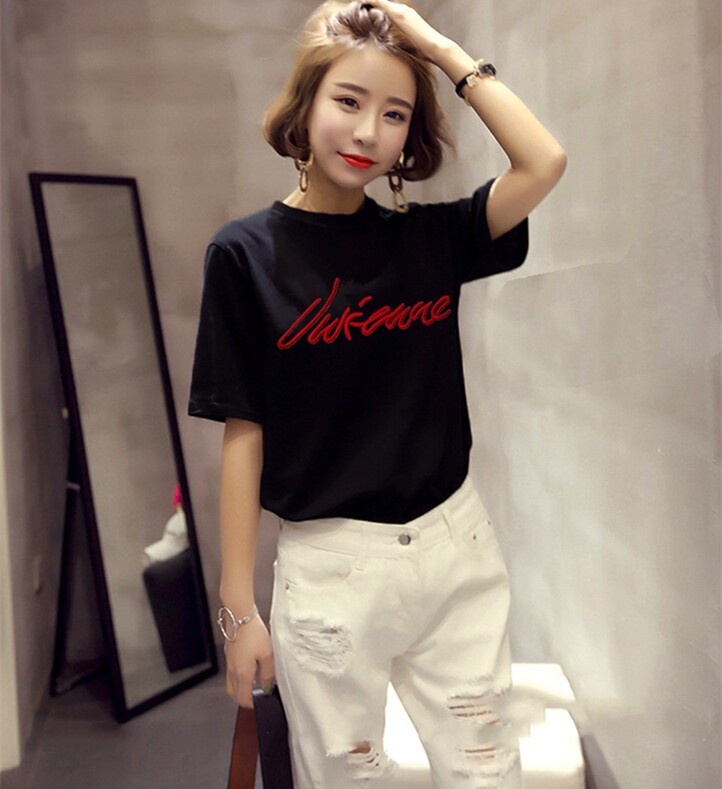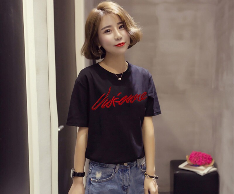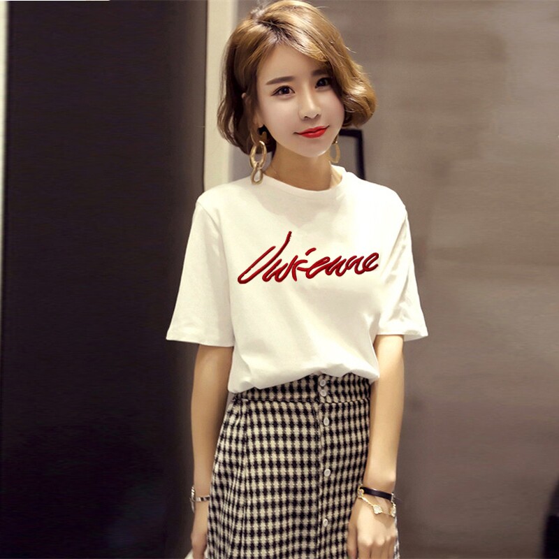 Белая базовая приятная телу футболка для школьников с круглым воротником, короткий рукав, коллекция 2021, в корейском стиле, с вышивкой