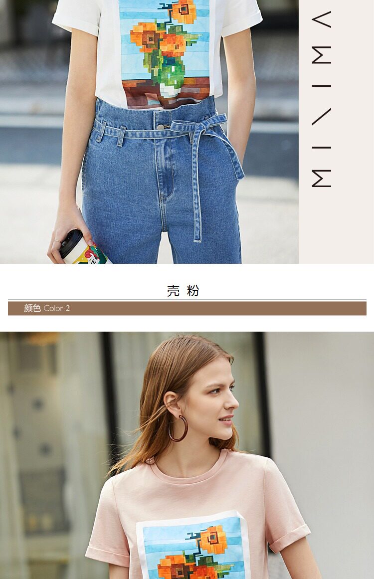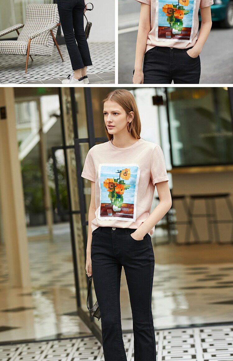 Amii Хлопковая футболка с круглым воротником, подходит для подростков