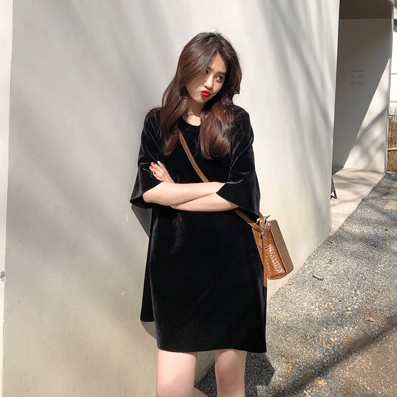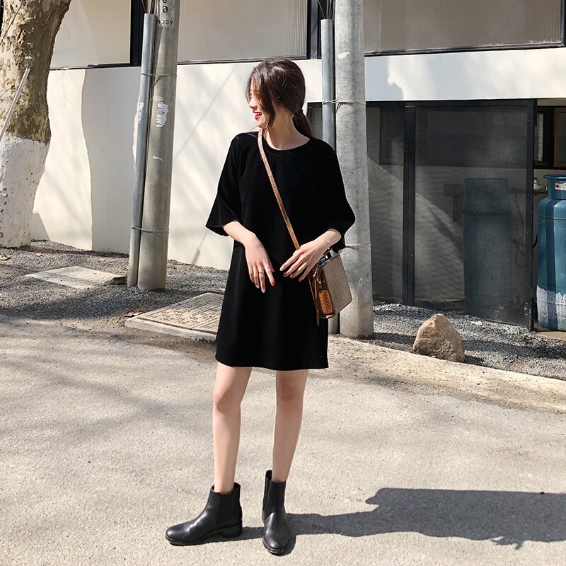 Длинная базовая приятная телу брендовая футболка, средней длины, популярно в интернете, короткий рукав, коллекция 2022, в корейском стиле