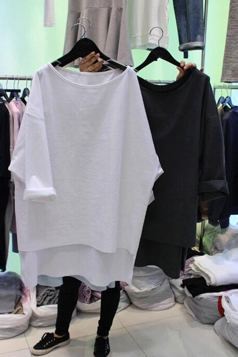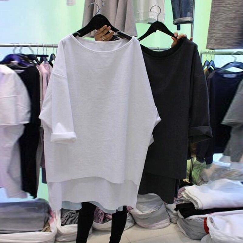 Длинная футболка с коротким рукавом, короткий рукав, коллекция 2021, в корейском стиле, свободный крой, средней длины