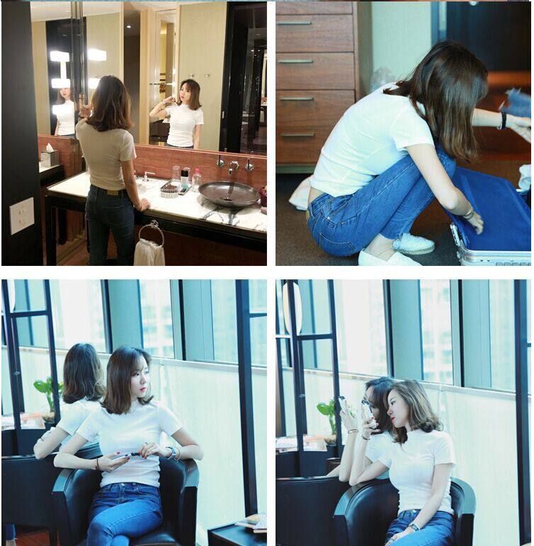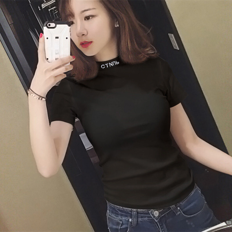 Tide, осенняя демисезонная базовая приятная телу футболка, 2024 года, городской стиль, высокий воротник, облегающий крой