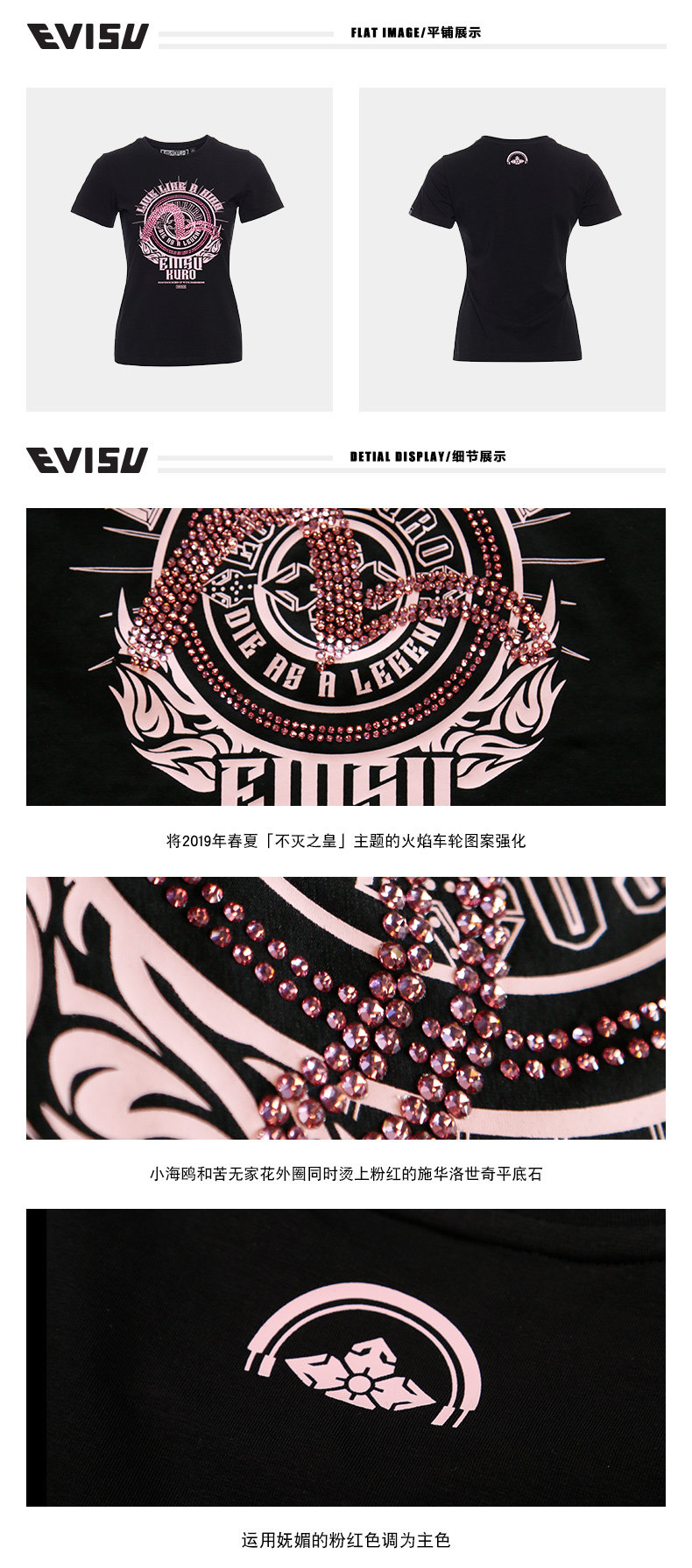 Evisu 19ss Ms. Short -sleeved T -Fyrts Используйте кристаллические элементы Swarovski 1essvw9ts600Sl