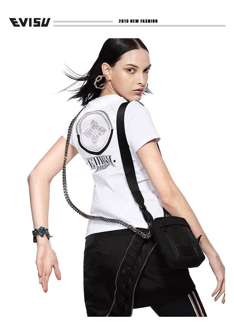 Женская футболка с коротким рукавом Evisu 19SS с кристаллом Swarovski 1ESSVW9TS602XX