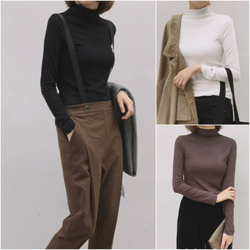 Весенний осенний демисезонный базовый приятный телу лонгслив, 2022 года, высокий воротник, в западном стиле