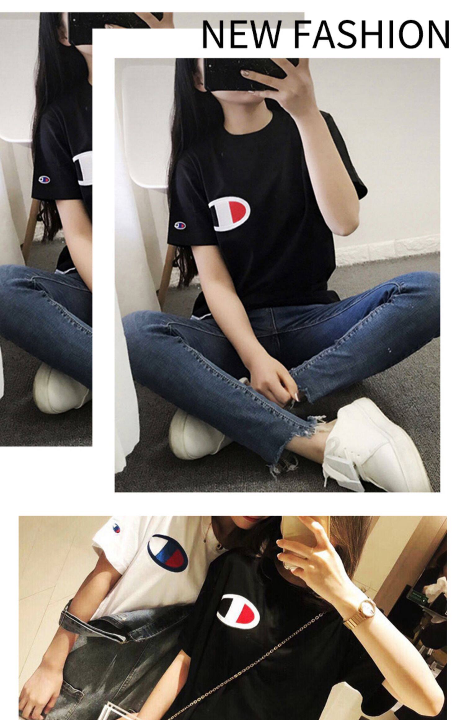 Летняя футболка с коротким рукавом для влюбленных, пластырь с круглым воротником, американская версия, новая коллекция, с вышивкой