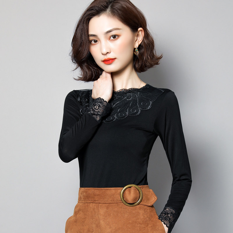 Кружевной шелковый приятный телу лонгслив, футболка, коллекция 2022, в западном стиле
