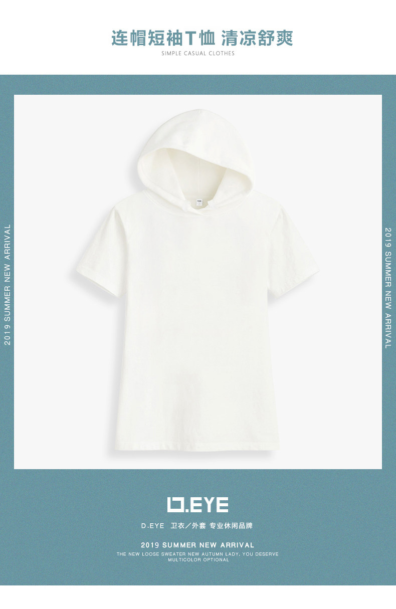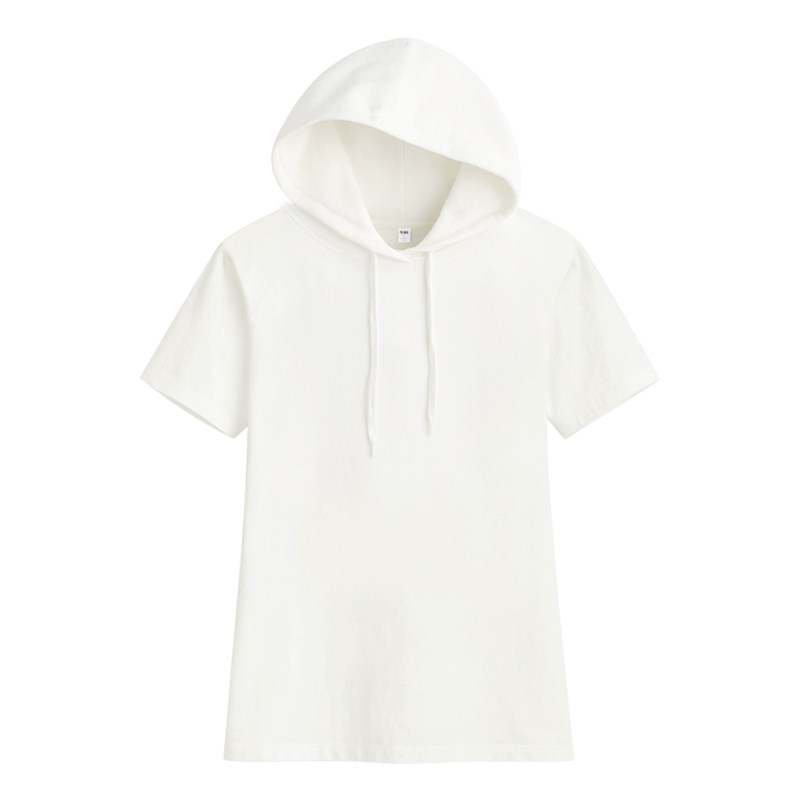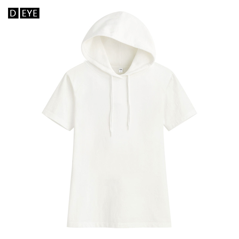 Летняя хлопковая футболка с коротким рукавом с капюшоном, спортивный тонкий балахон для отдыха, тонкая белая толстовка, оверсайз