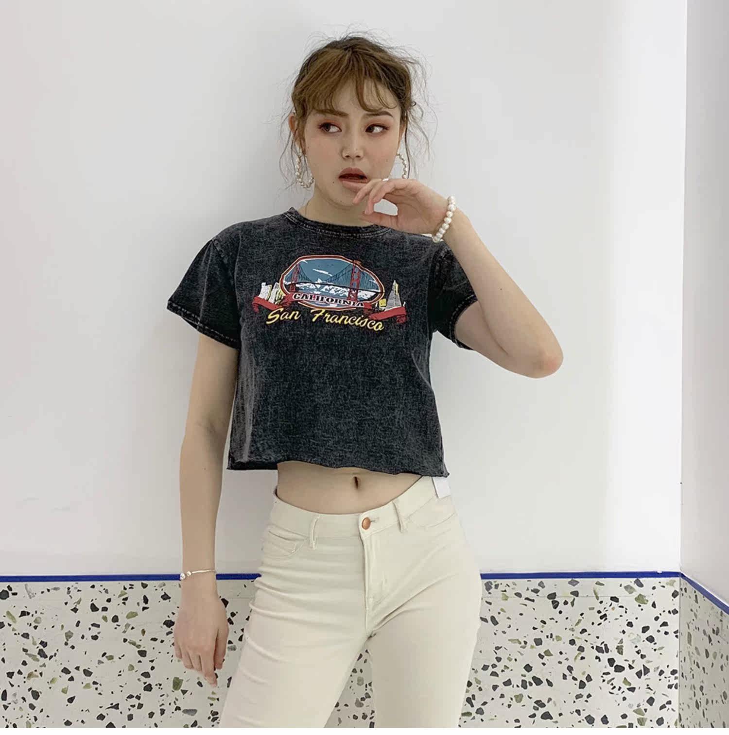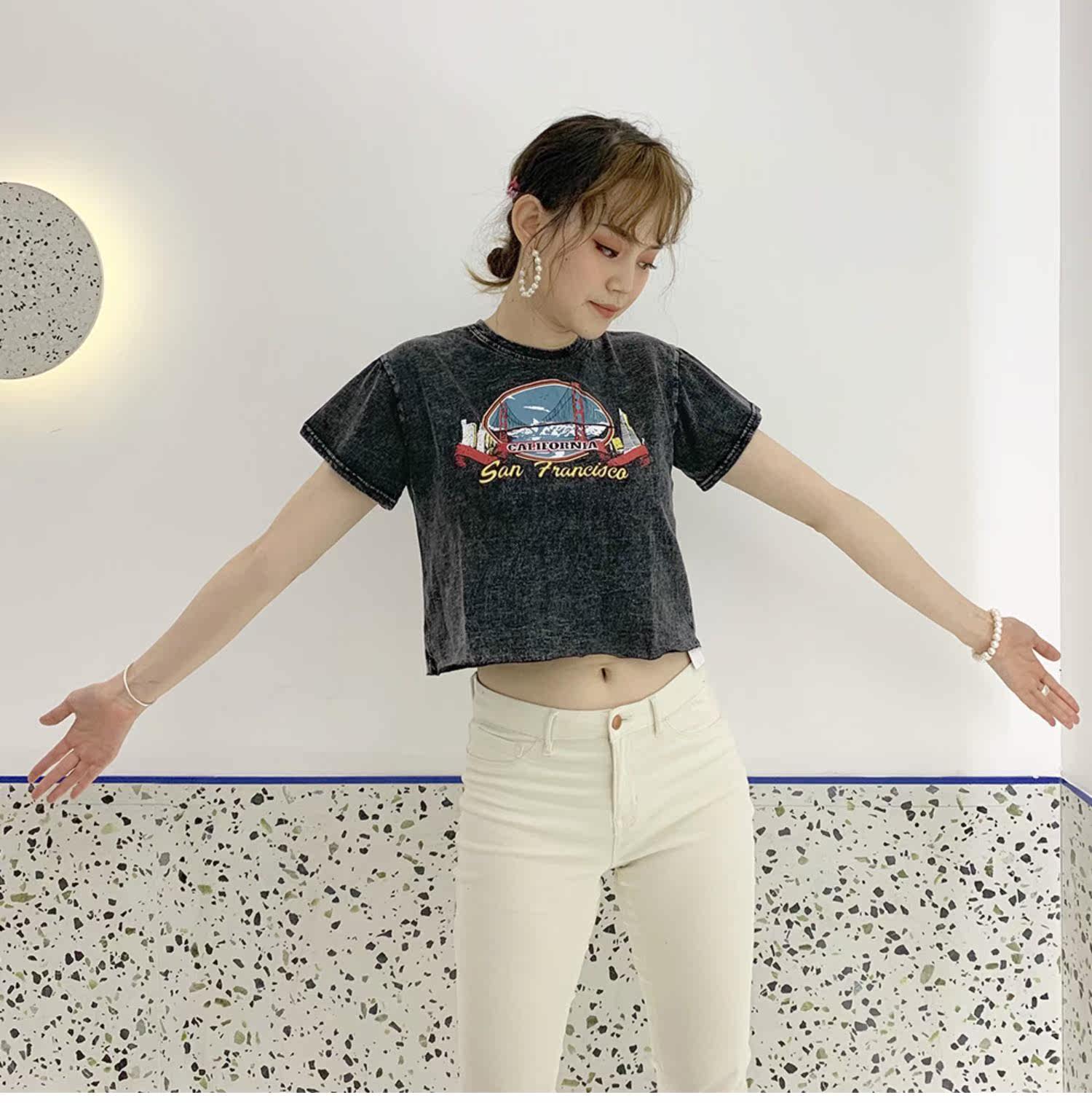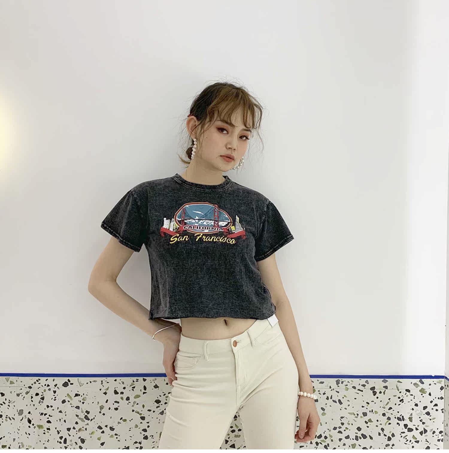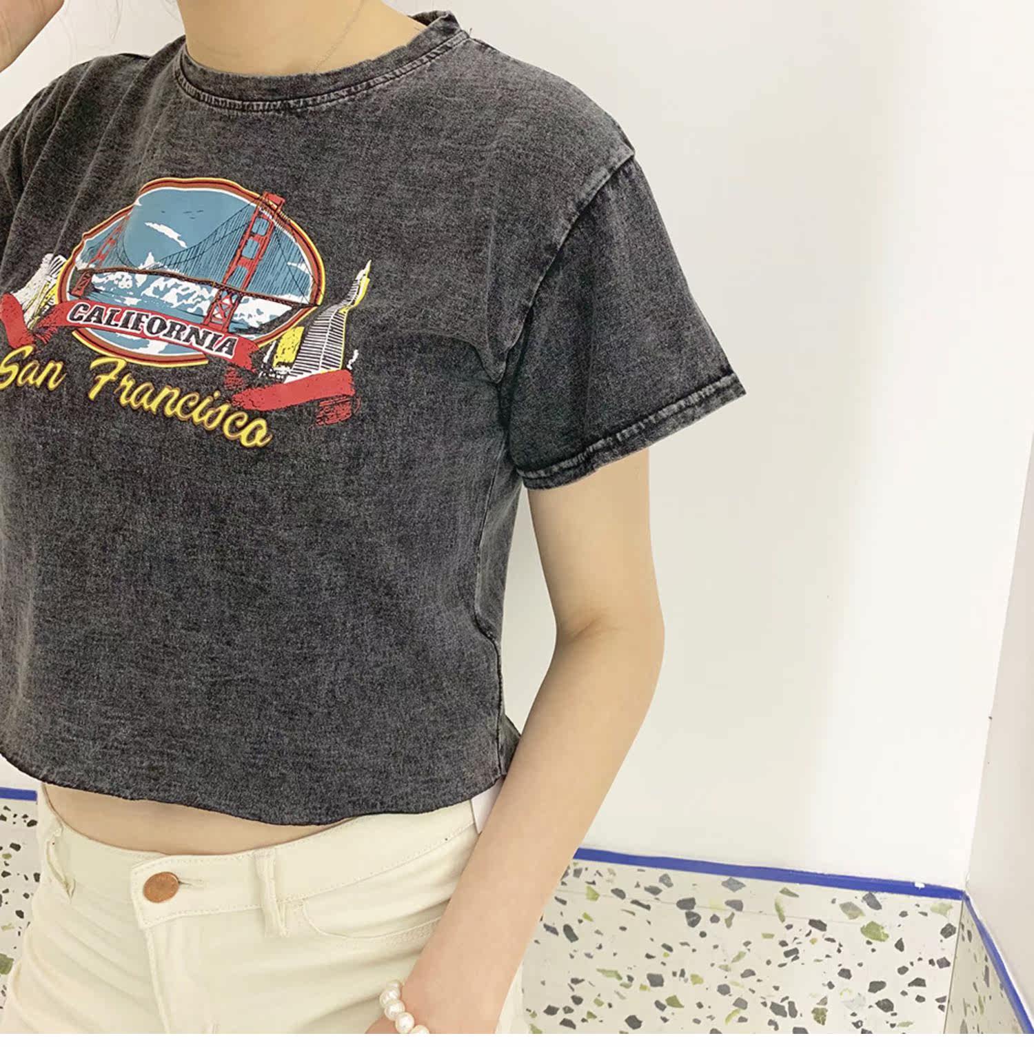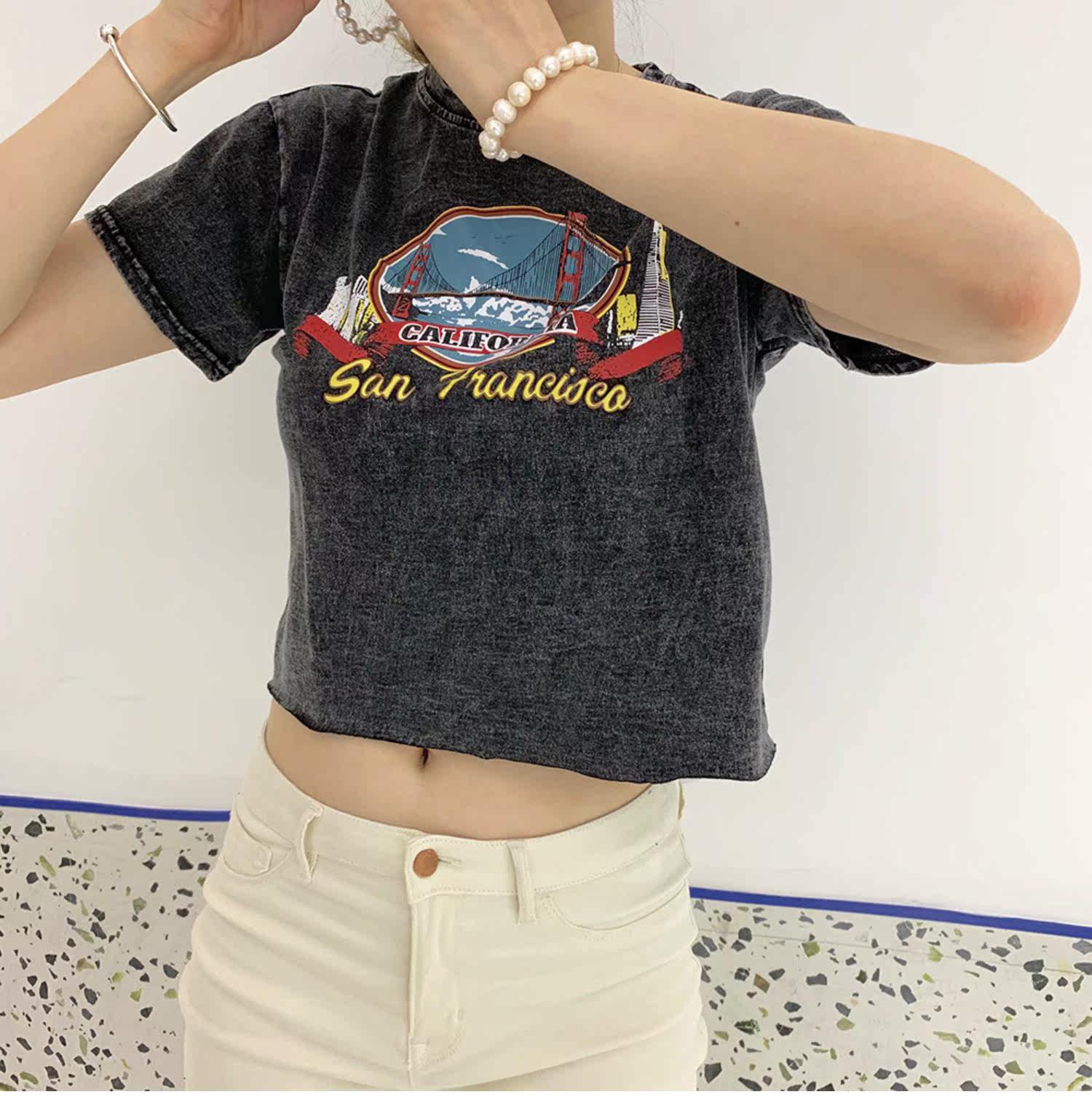 Ретро короткий гидролат, футболка с коротким рукавом, в американском стиле, свободный крой