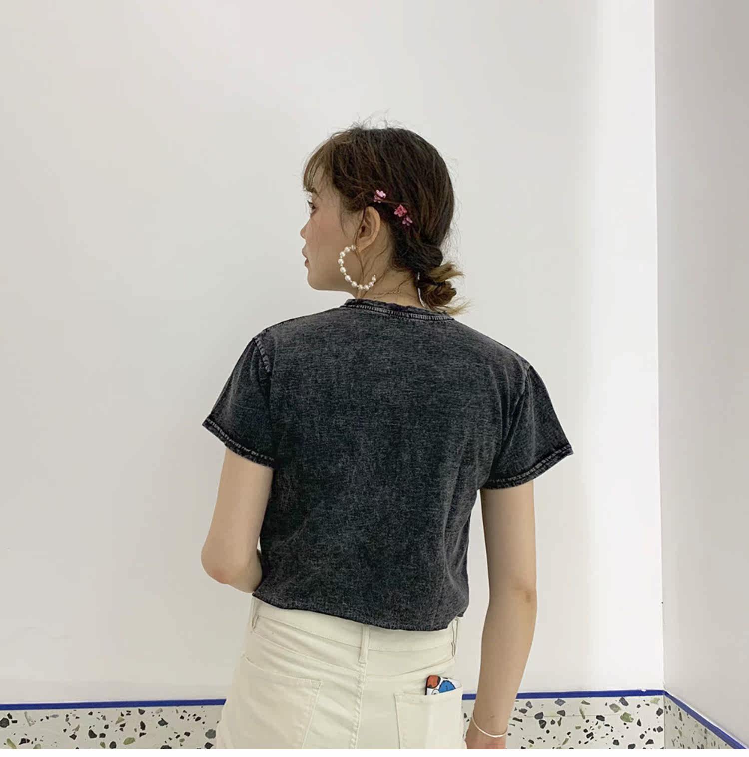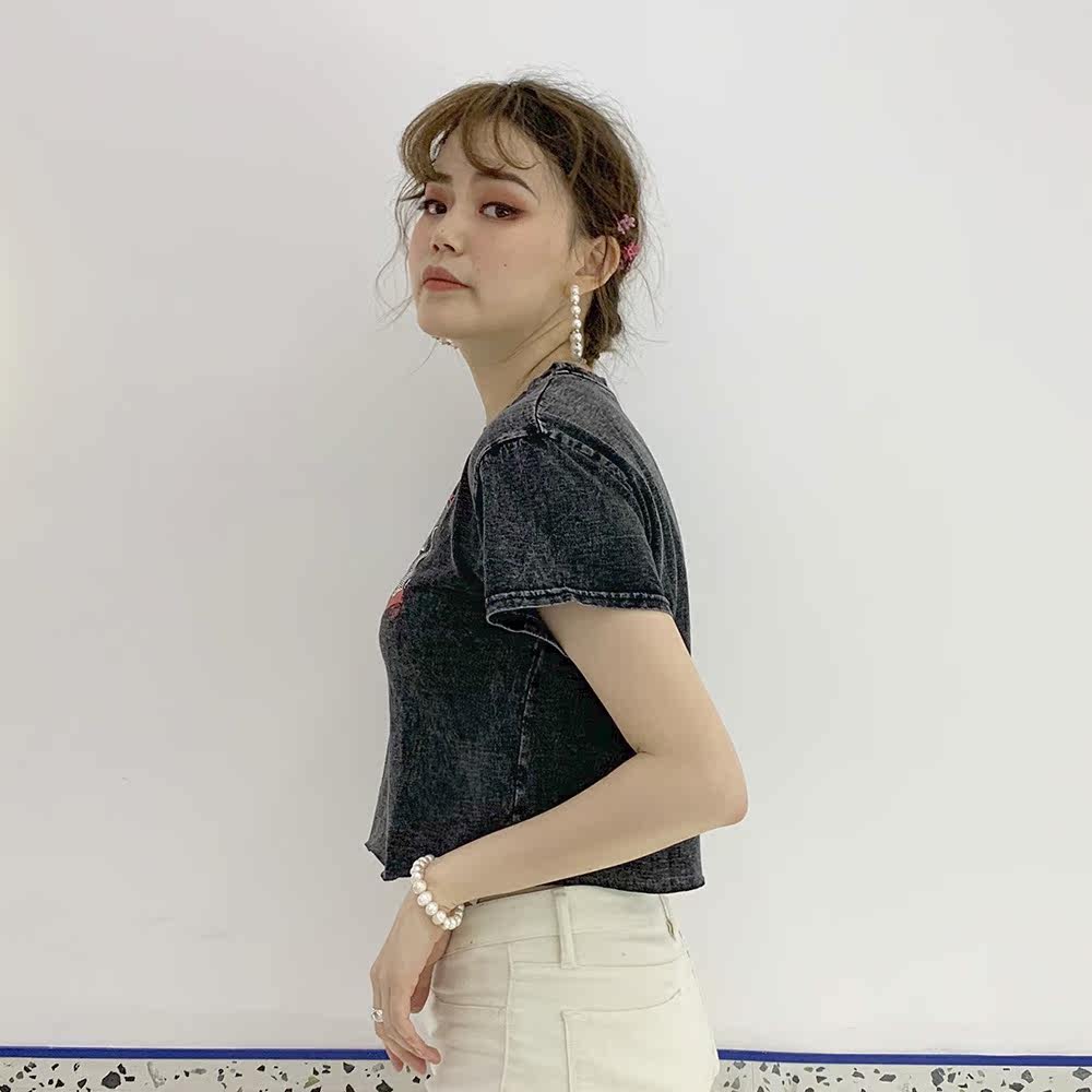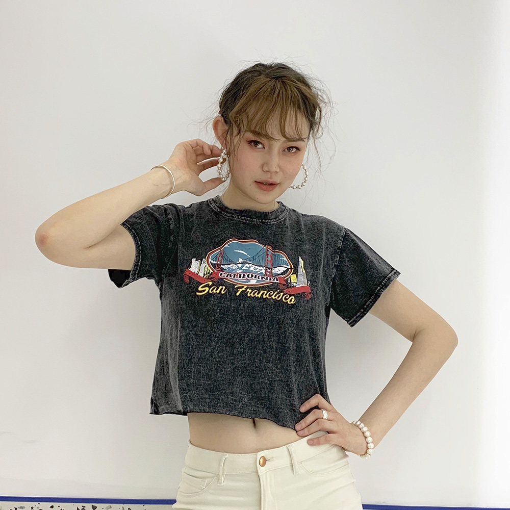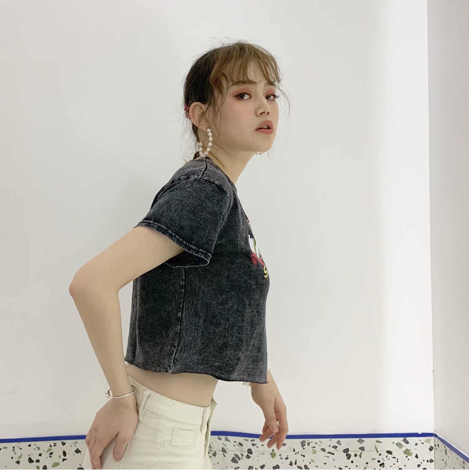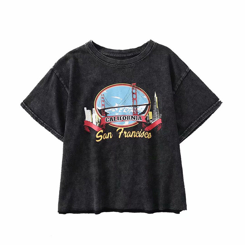 Ретро короткий гидролат, футболка с коротким рукавом, в американском стиле, свободный крой