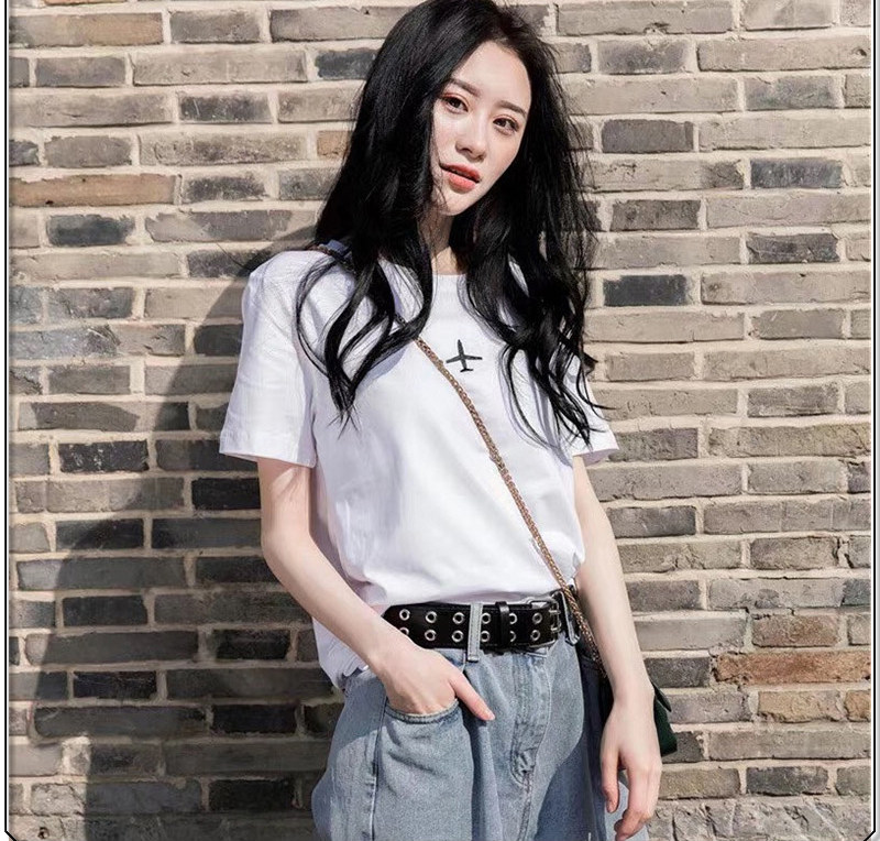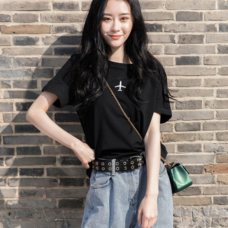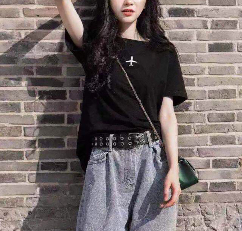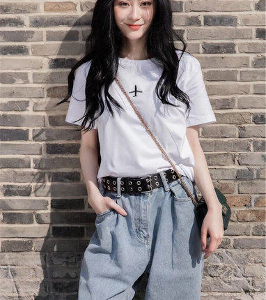 Tide, белый самолет, летняя универсальная футболка, короткий рукав, свободный крой, в корейском стиле, популярно в интернете