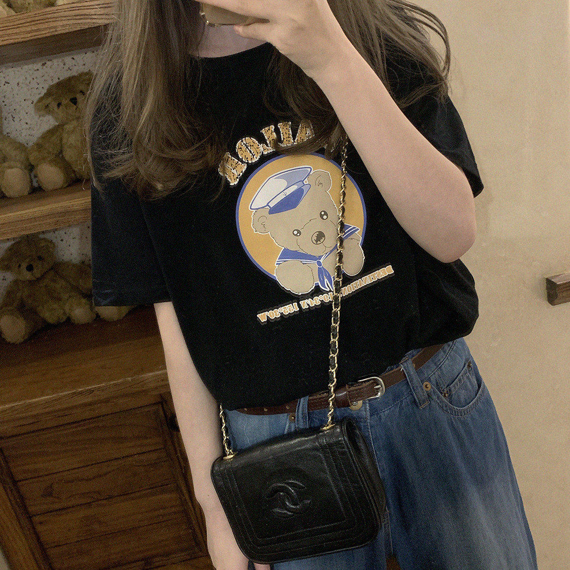 Оригинальная милая черная футболка, с медвежатами
