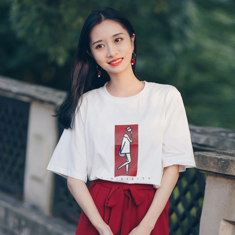 Хлопковая мультяшная короткая футболка, в корейском стиле, короткий рукав, с рукавом, в западном стиле
