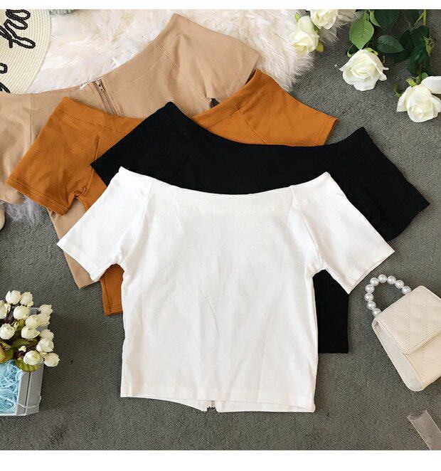 Модная короткая летняя приталенная базовая приятная телу футболка, короткий рукав, в западном стиле