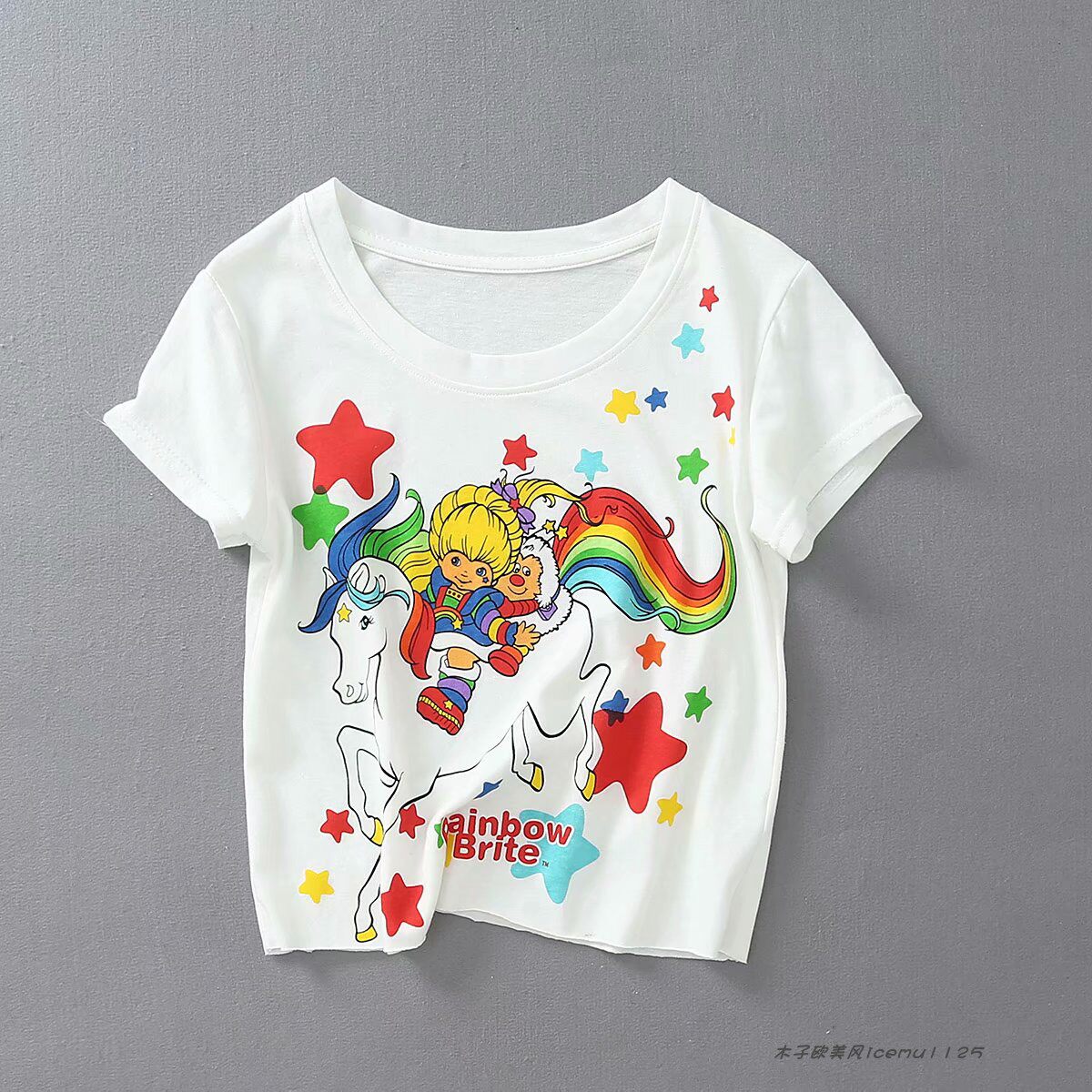 Ретро радужная пони с круглым воротником, короткая футболка, европейский стиль, свободный прямой крой
