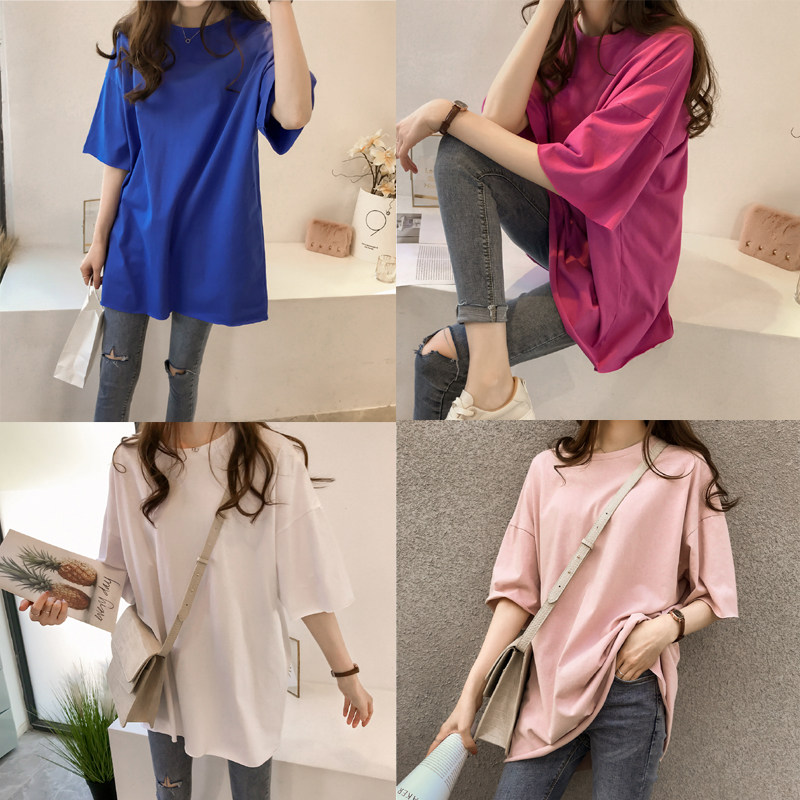 Цветная длинная брендовая футболка с коротким рукавом для школьников, коллекция 2021, в корейском стиле