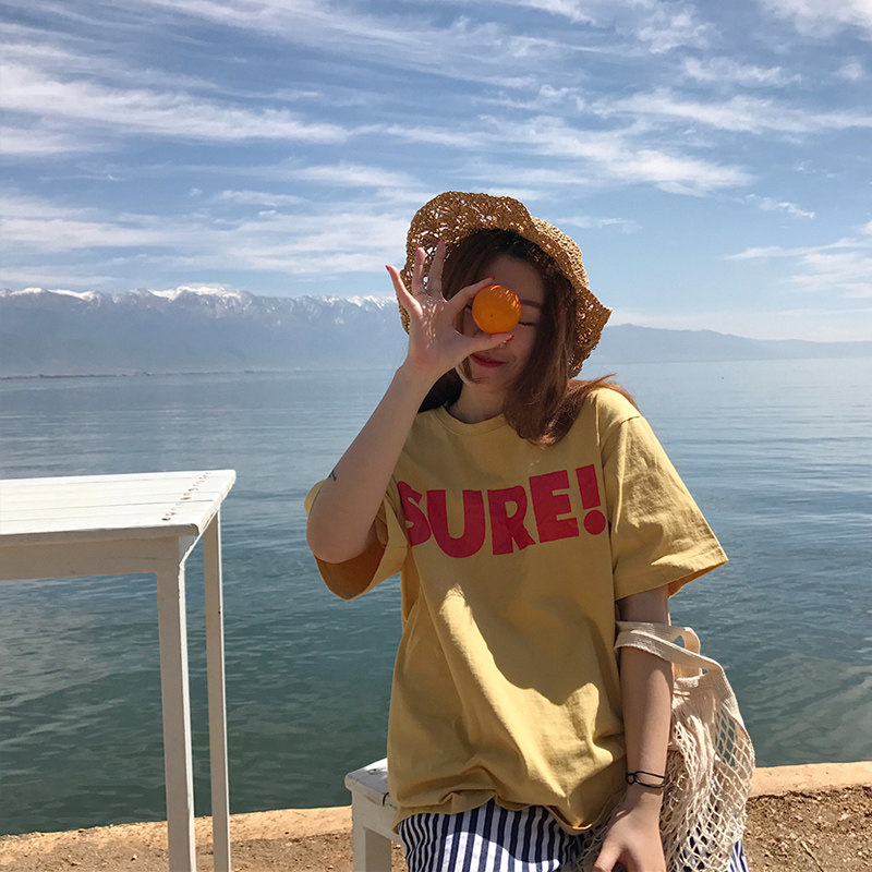Милая брендовая футболка с коротким рукавом для школьников, коллекция 2021, в корейском стиле, свободный крой