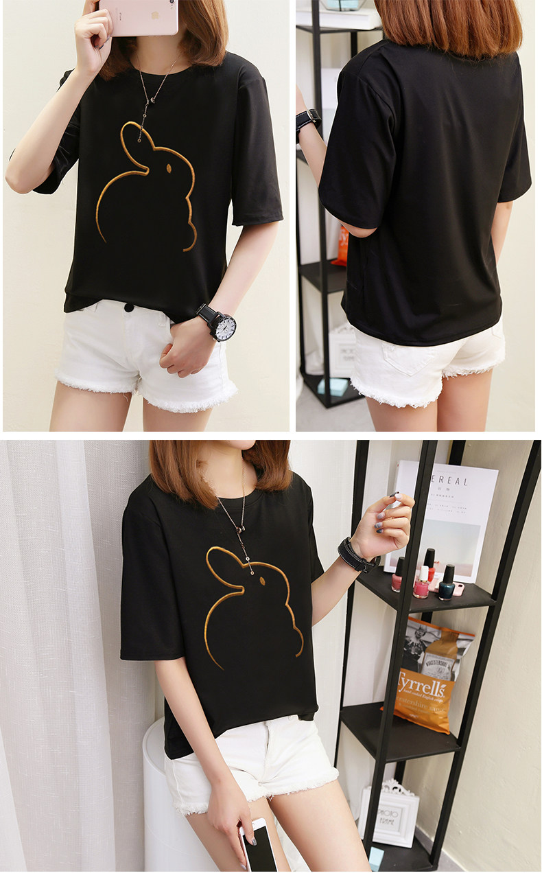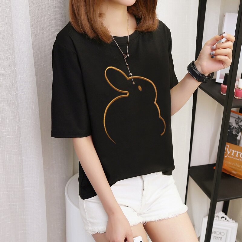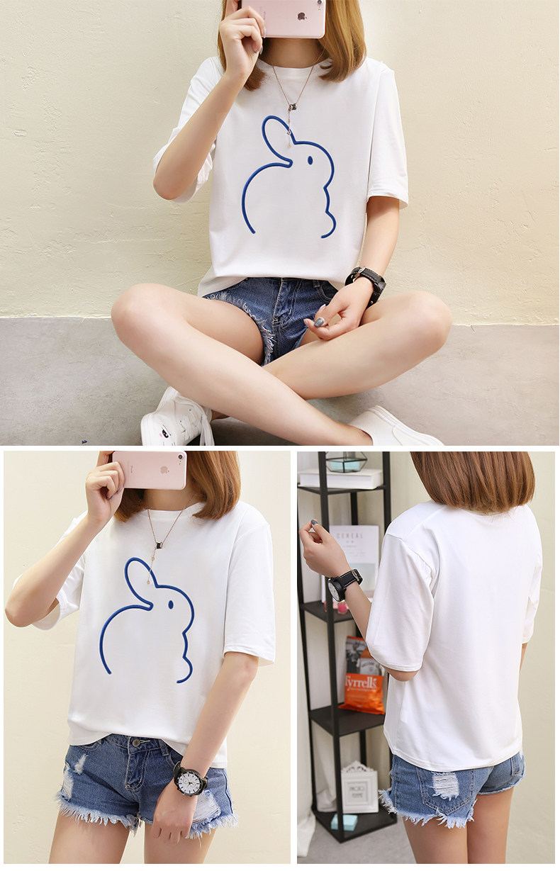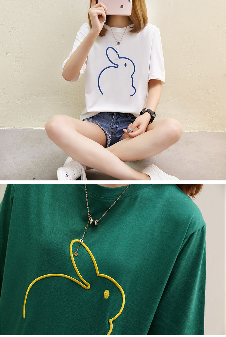 Мультяшный кролик, универсальная милая футболка с коротким рукавом для школьников, коллекция 2021, в корейском стиле, новая коллекция, с вышивкой