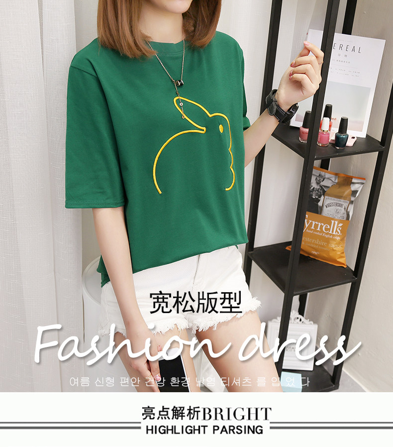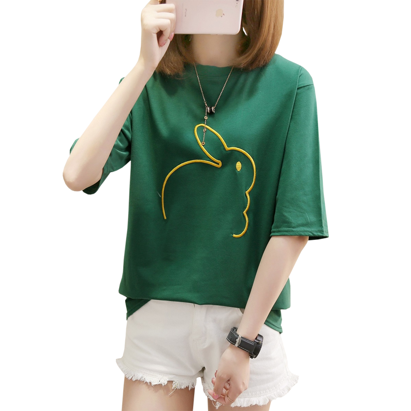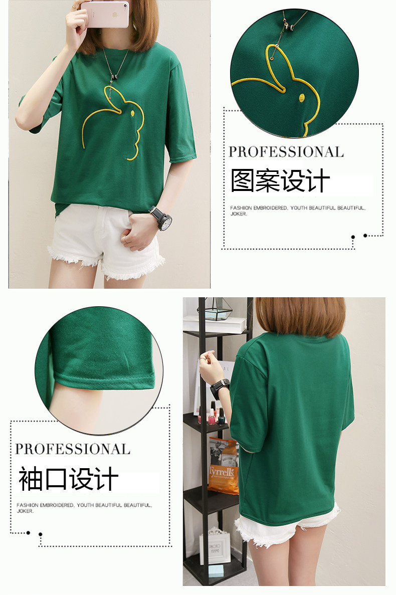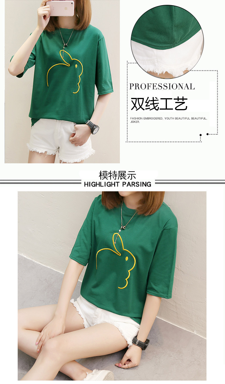 Мультяшный кролик, универсальная милая футболка с коротким рукавом для школьников, коллекция 2021, в корейском стиле, новая коллекция, с вышивкой