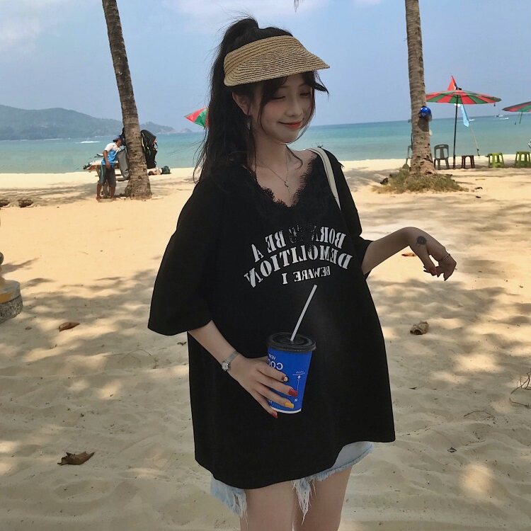 Небольшая дизайнерская кружевная футболка, коллекция 2021, по фигуре, тренд сезона, V-образный вырез, свободный крой