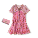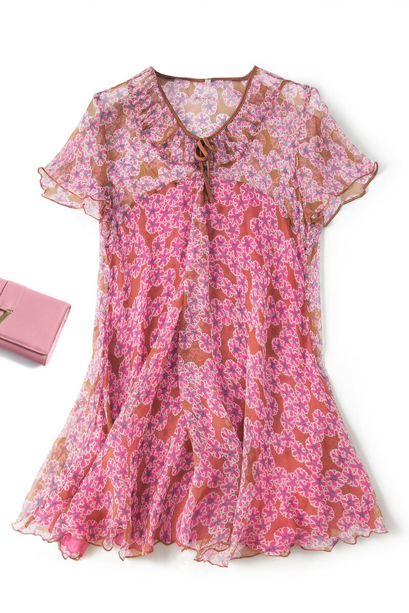 Шелковая розовая длинная футболка, коллекция 2021, цветочный принт, средней длины