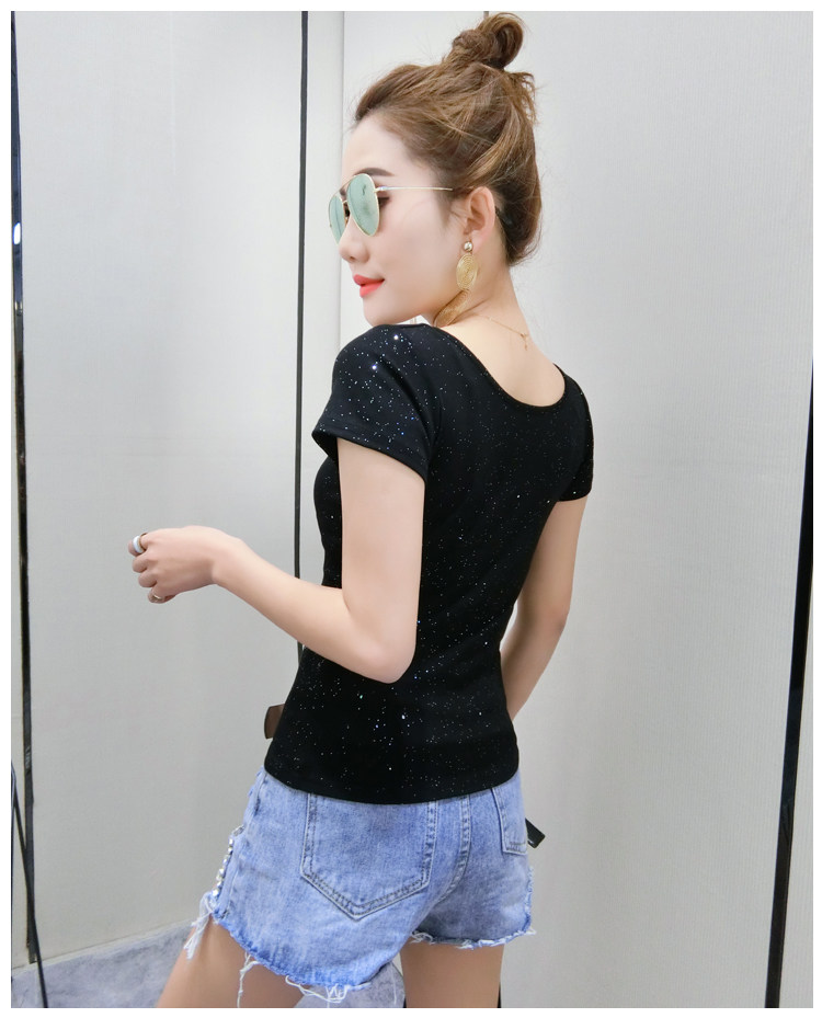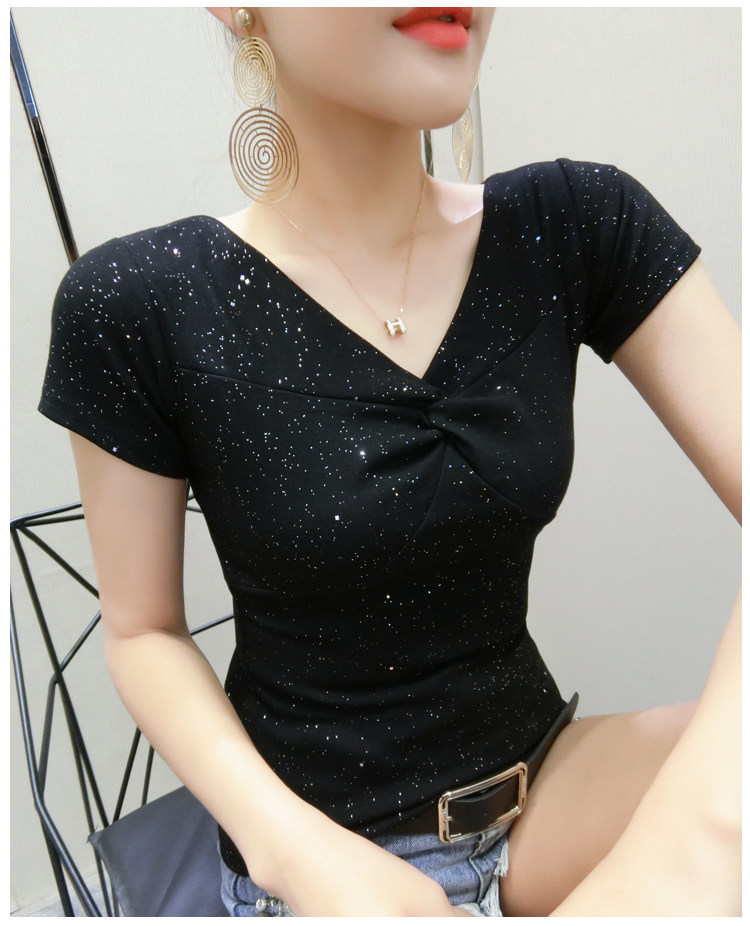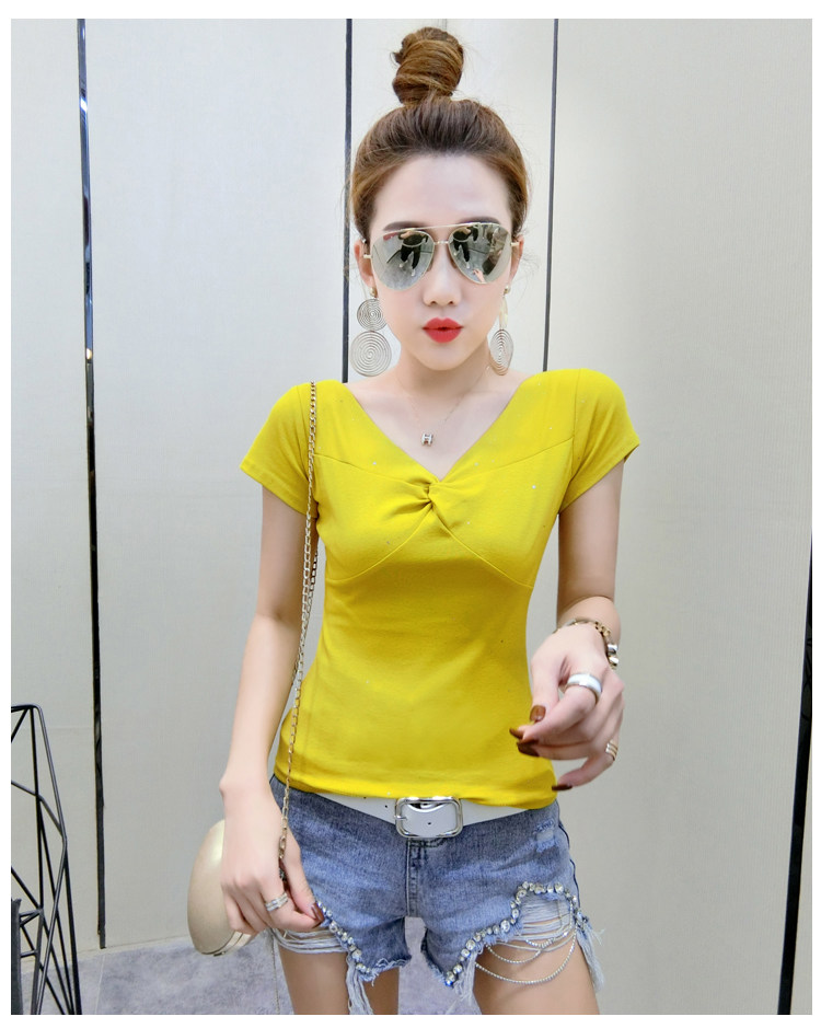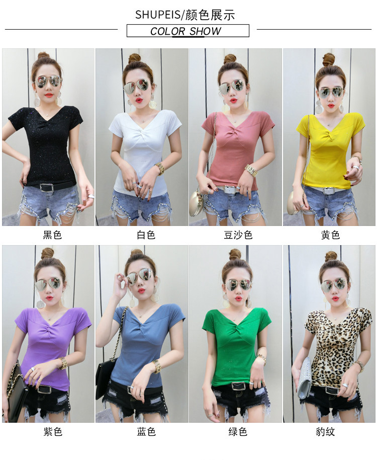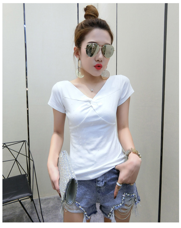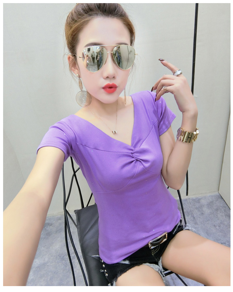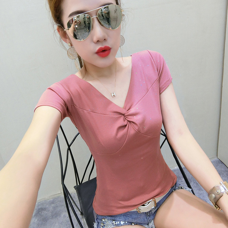 Хлопковая летняя одежда, сексуальная модная футболка, V-образный вырез, короткий рукав, облегающий крой, в обтяжку