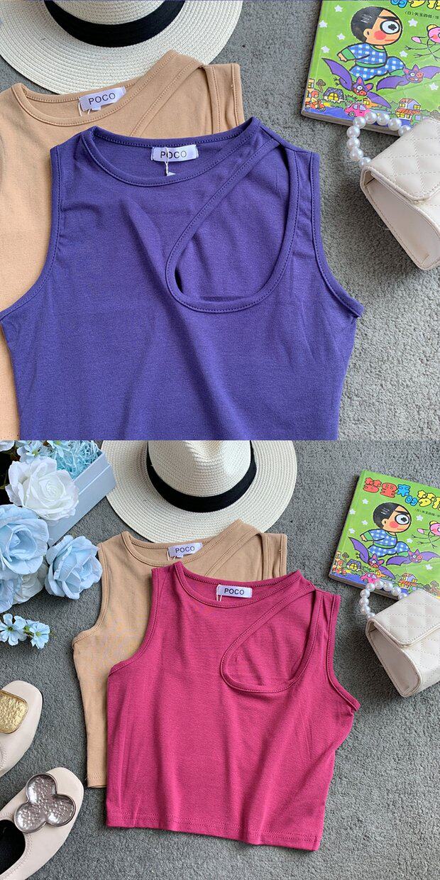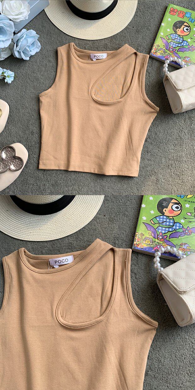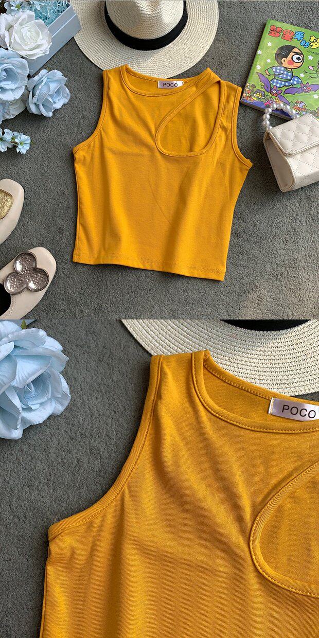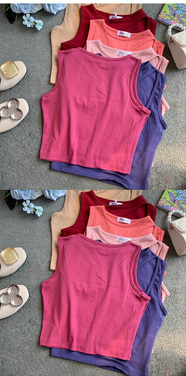 Сексуальная базовая летняя одежда, короткая футболка с круглым воротником без рукавов, в корейском стиле, в обтяжку, облегающий крой