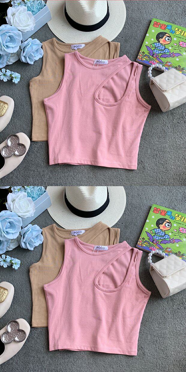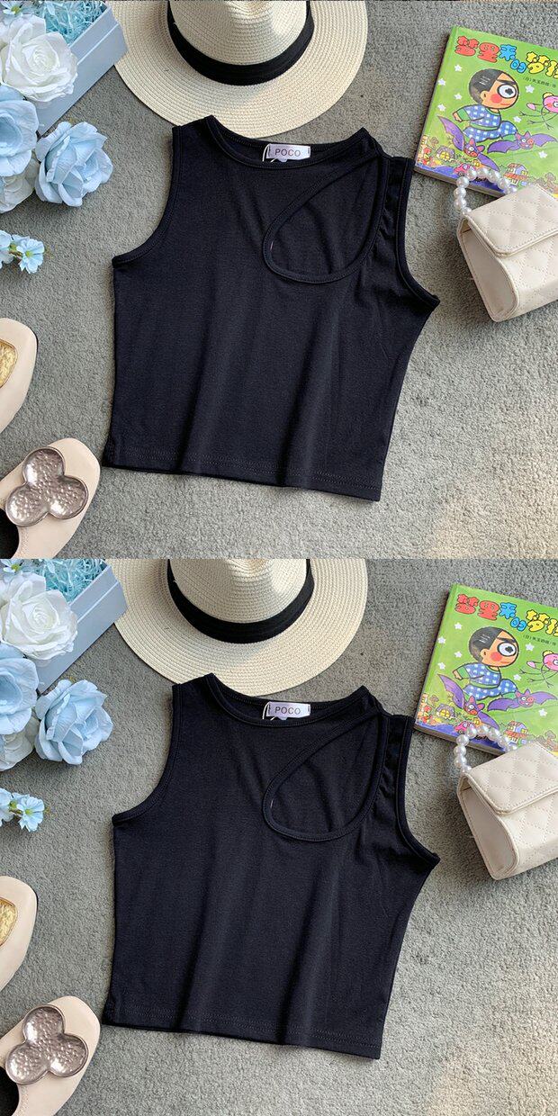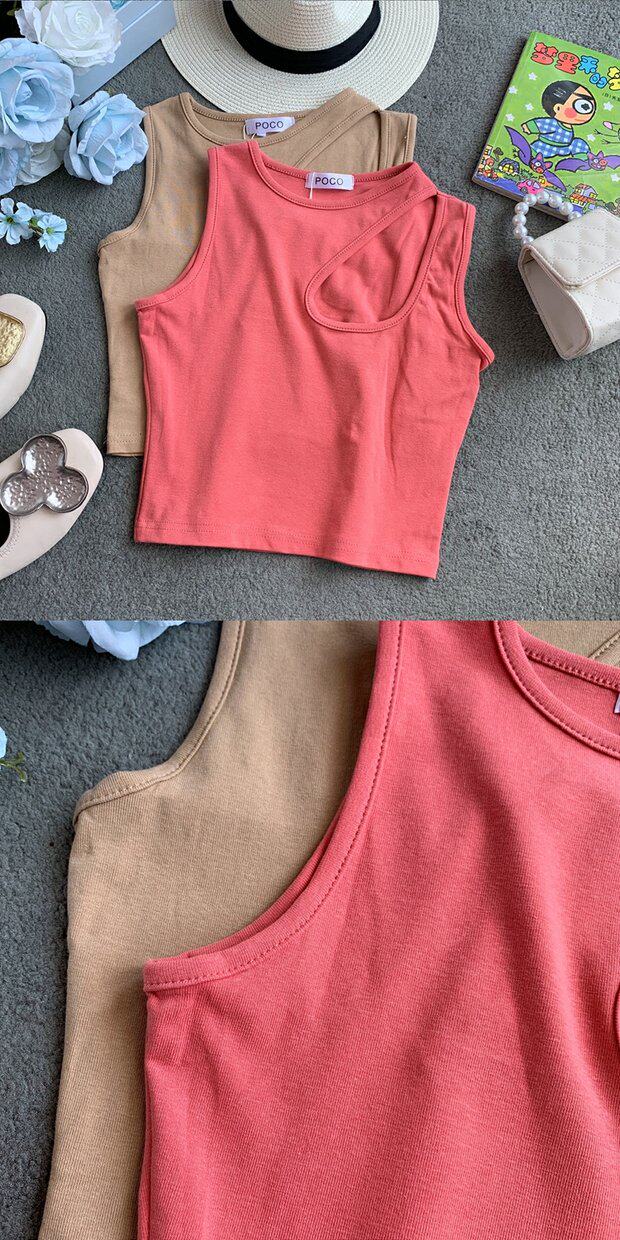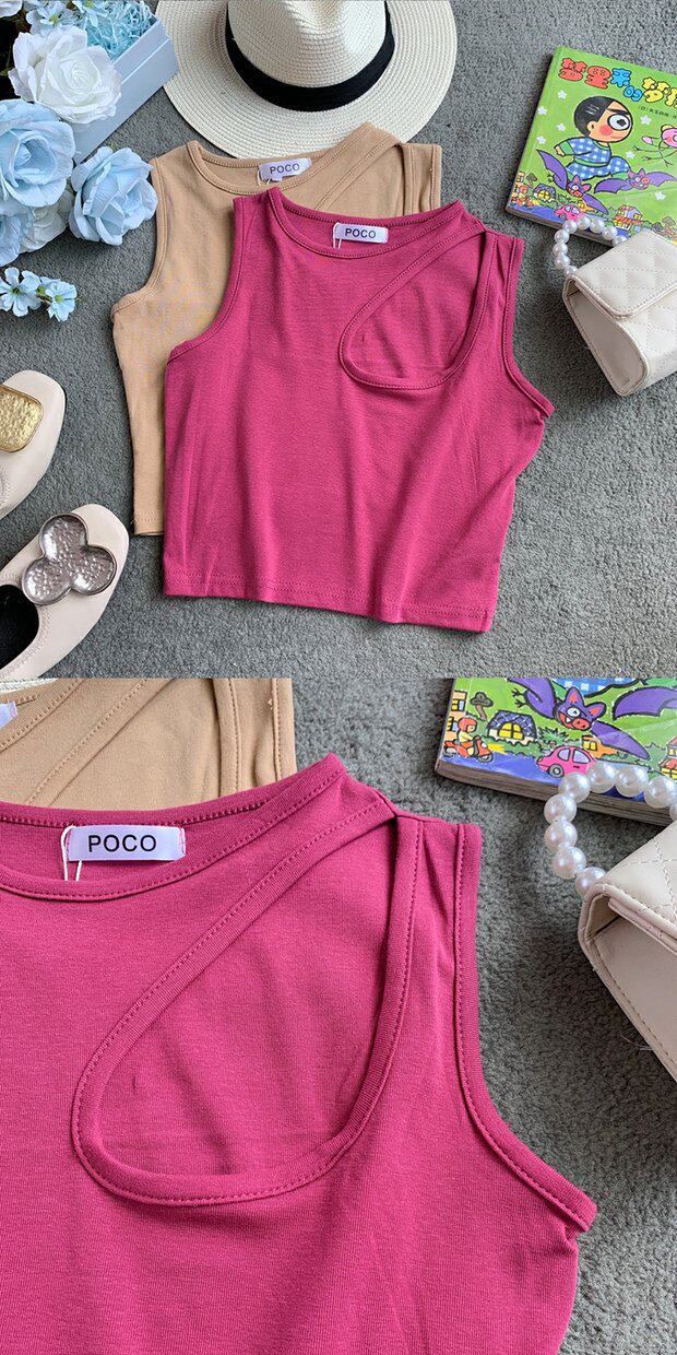 Сексуальная базовая летняя одежда, короткая футболка с круглым воротником без рукавов, в корейском стиле, в обтяжку, облегающий крой