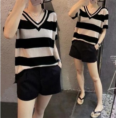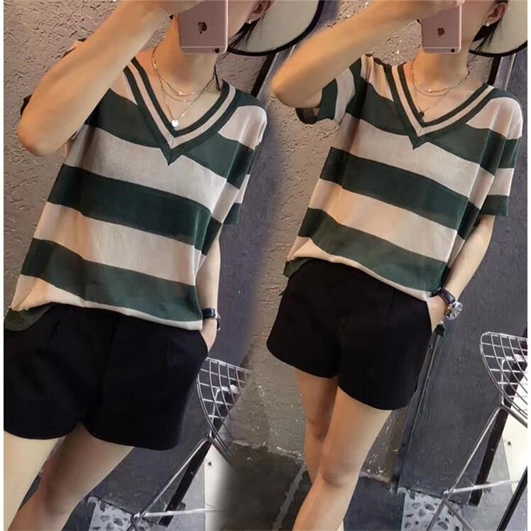 Летняя летняя одежда, модная тонкая трикотажная футболка, большой размер, коллекция 2023, V-образный вырез, короткий рукав, оверсайз