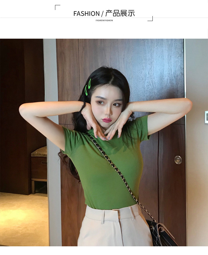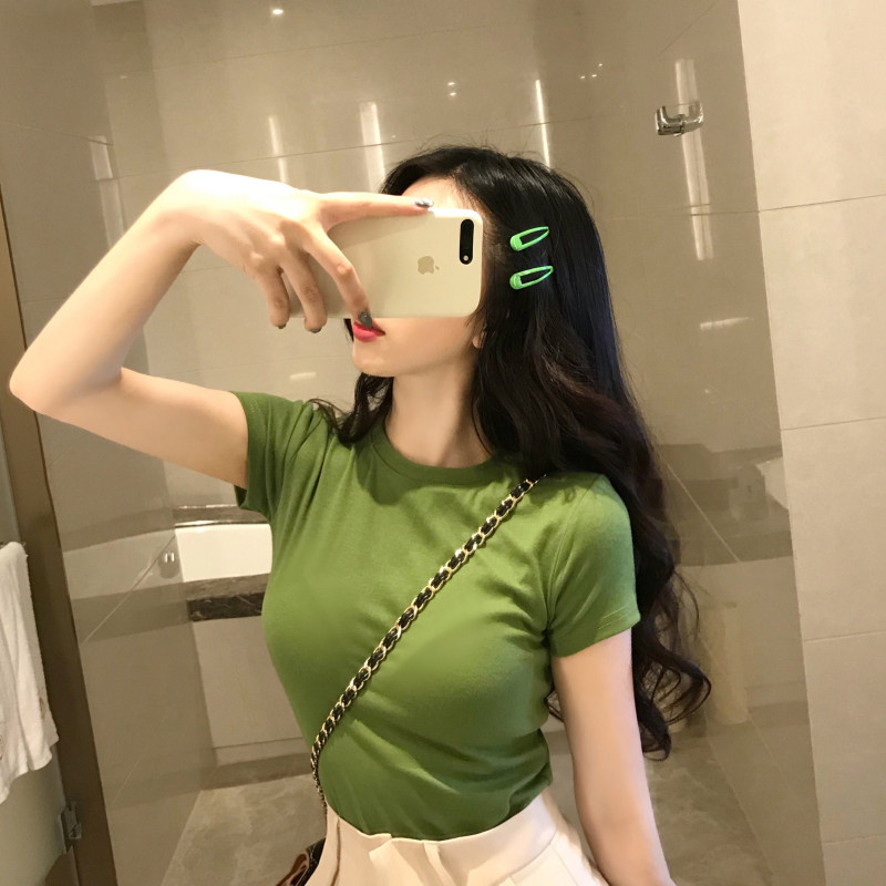 TikTok, сексуальная короткая хлопковая зеленая футболка, короткий рукав