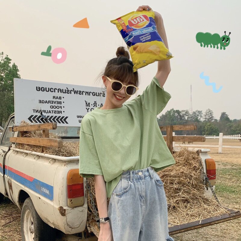 TikTok, зеленая футболка, короткий рукав, коллекция 2021, оверсайз, популярно в интернете, большой размер