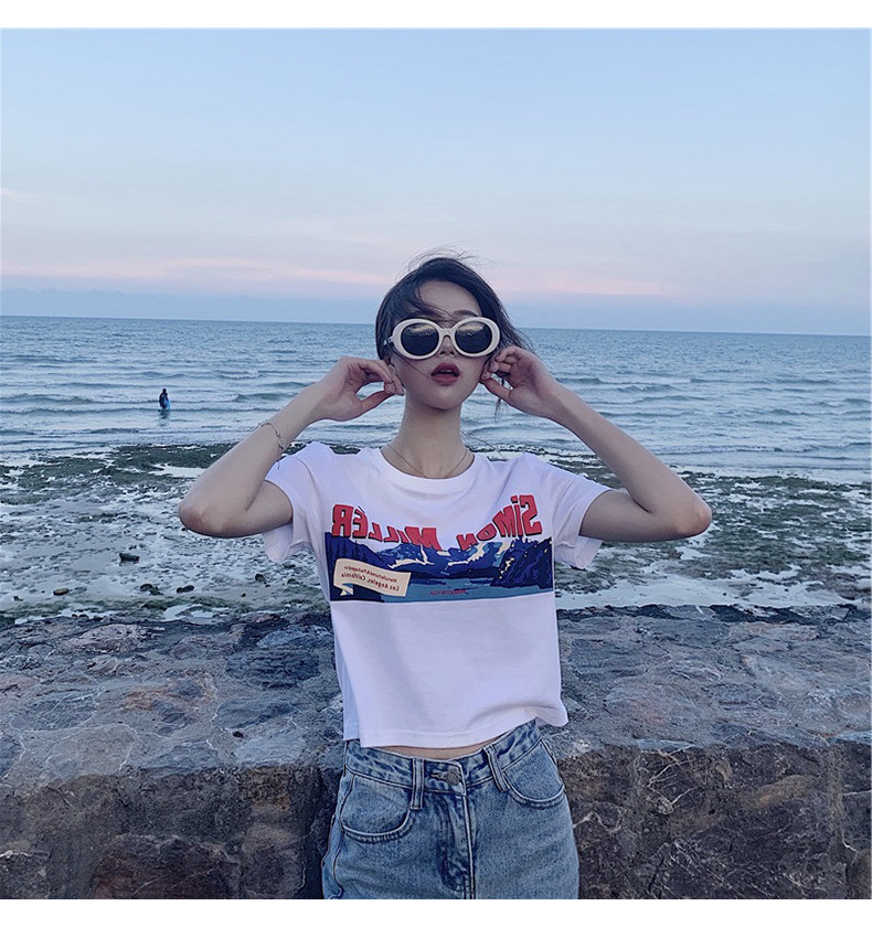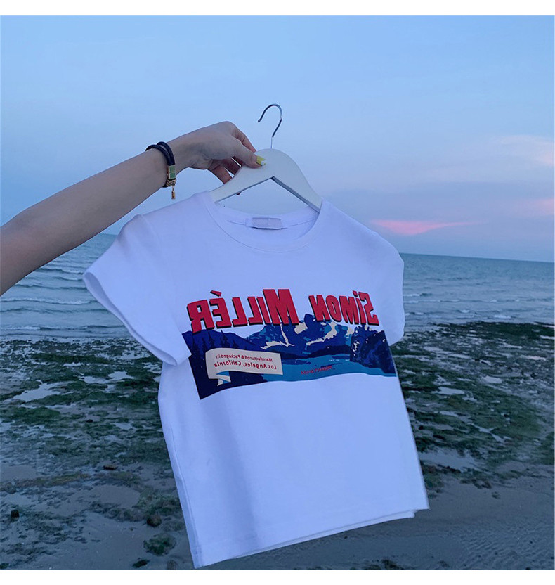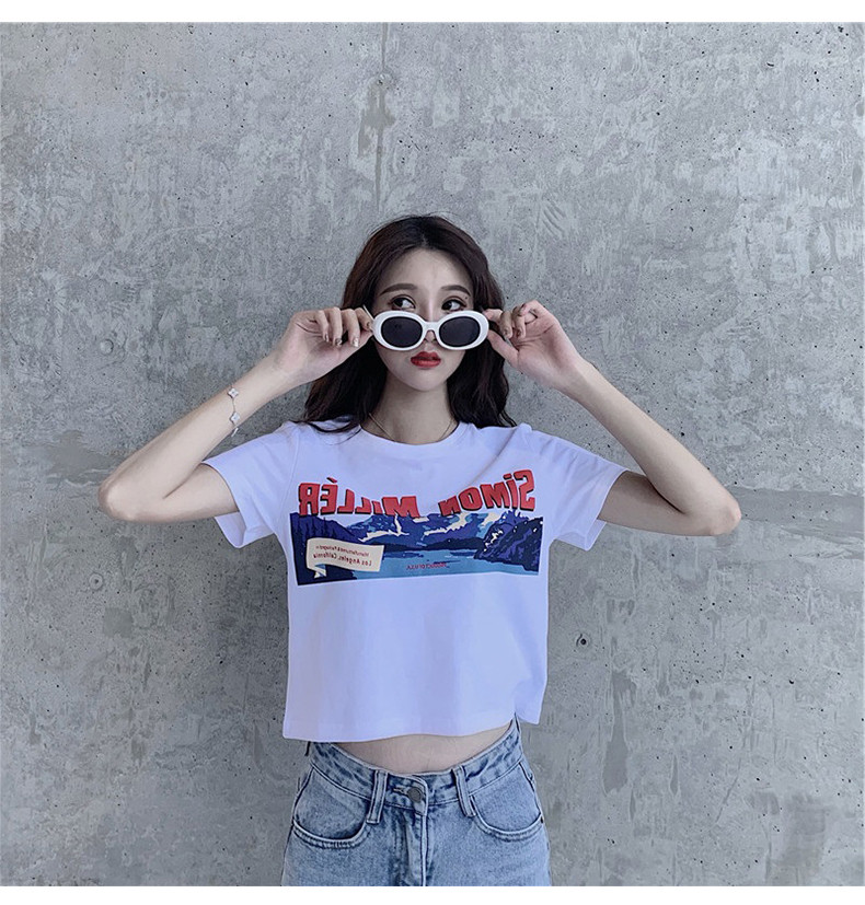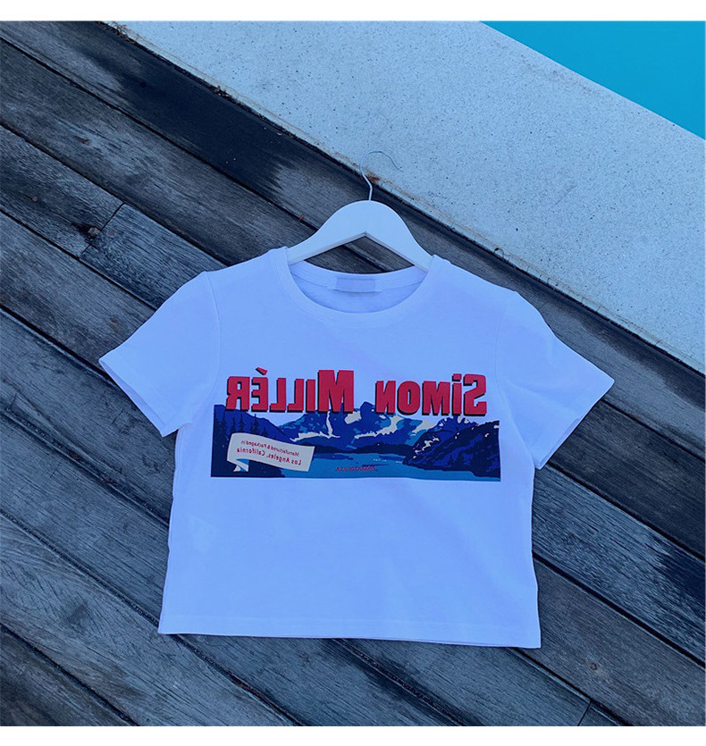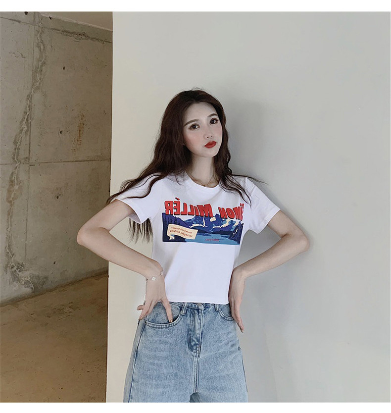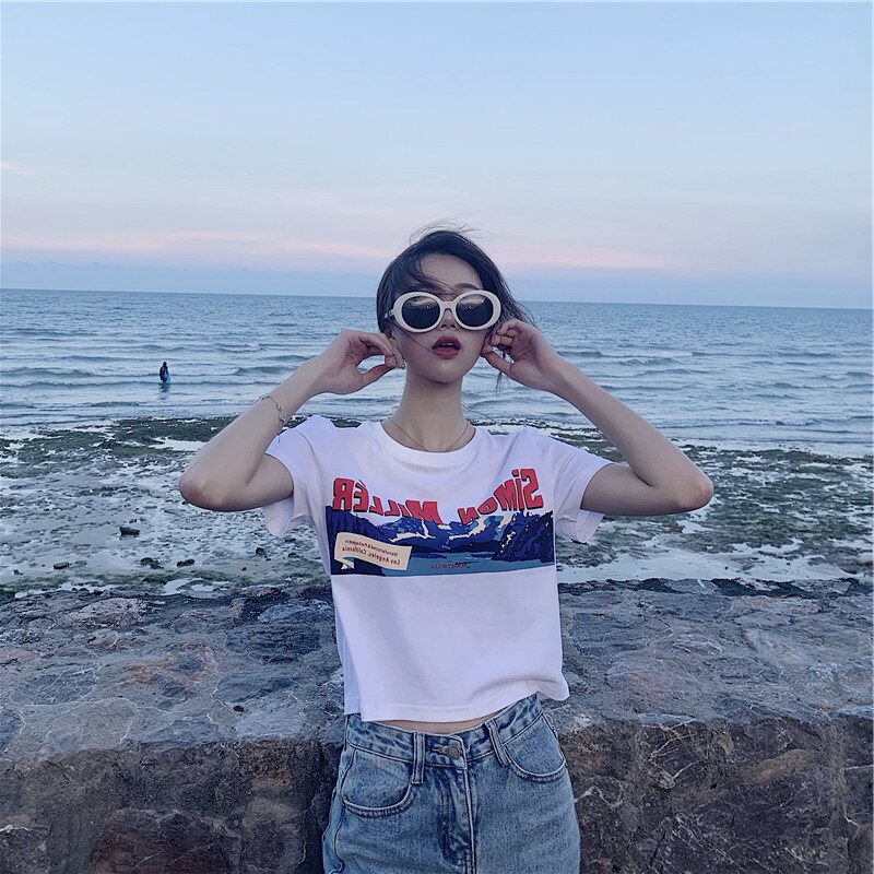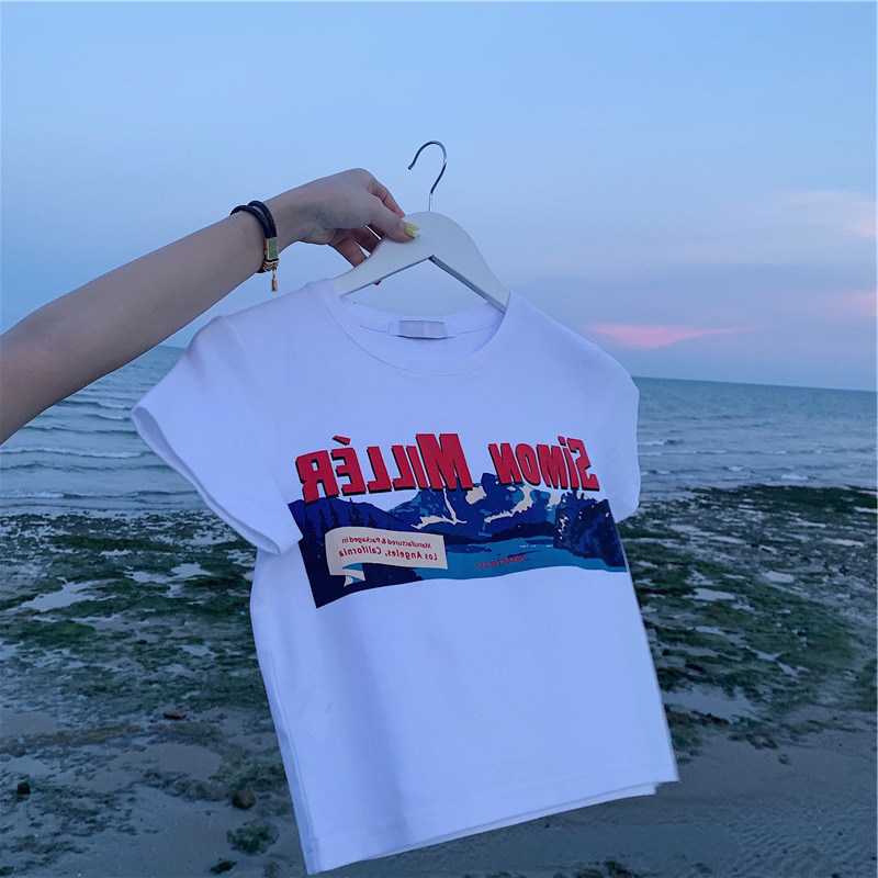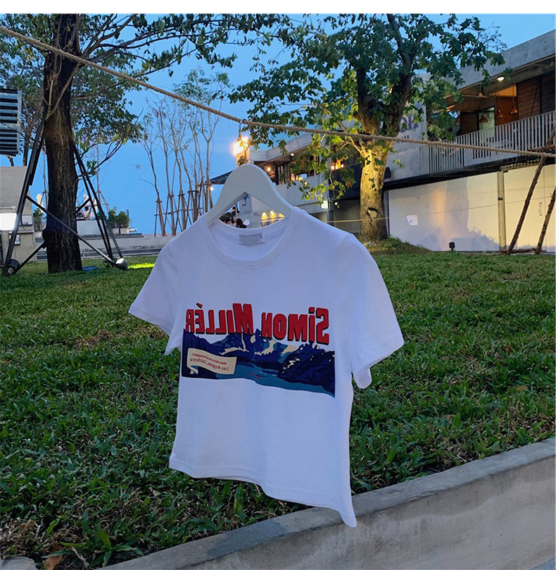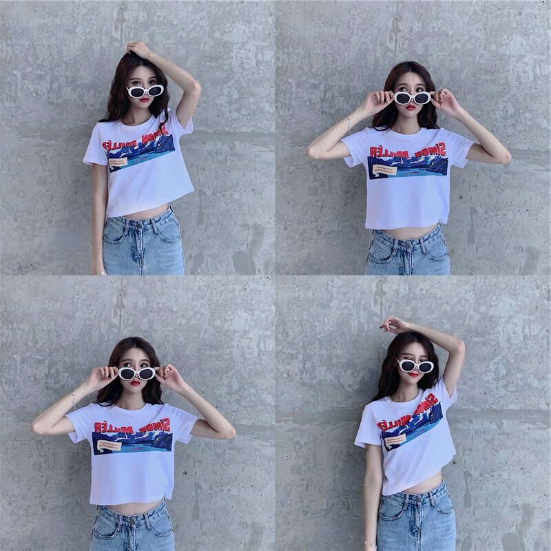 Белая брендовая короткая футболка, короткий рукав, коллекция 2022, оверсайз, популярно в интернете, в западном стиле