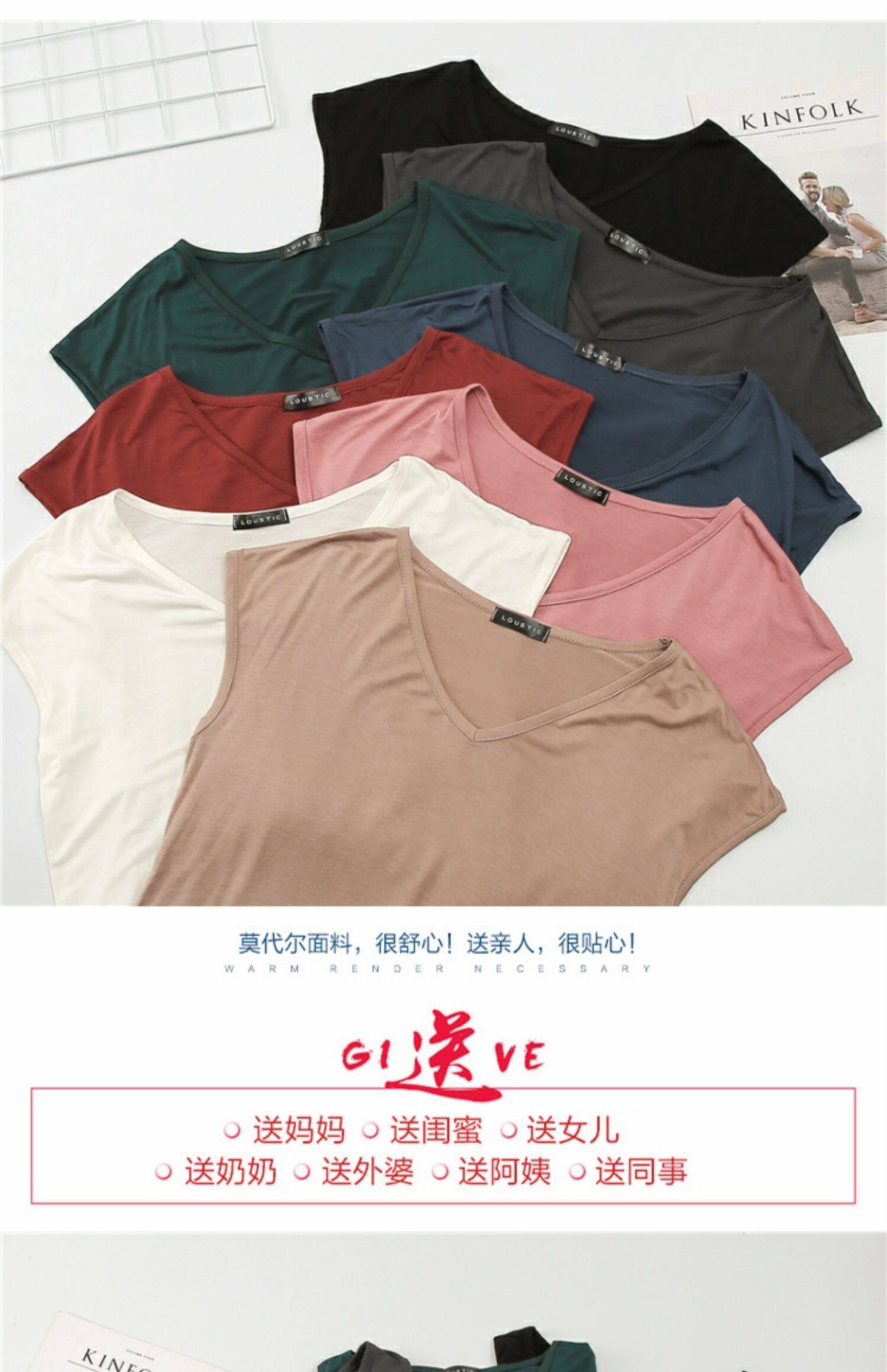 Летняя тонкая базовая приятная телу футболка без рукавов, сшита из модала, V-образный вырез, коллекция 2023, большой размер, короткий рукав