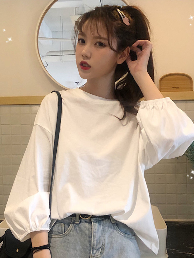 Tide, белая футболка, весенний фонарь, базовая рубашка, лонгслив, коллекция 2023, в корейском стиле, оверсайз