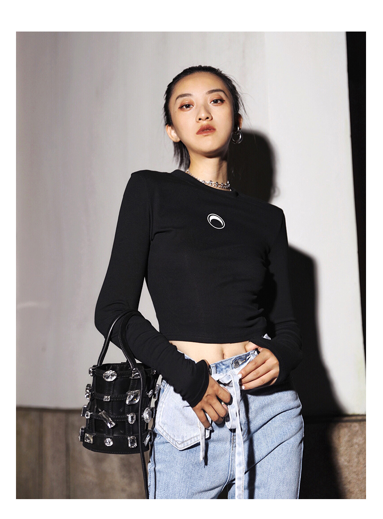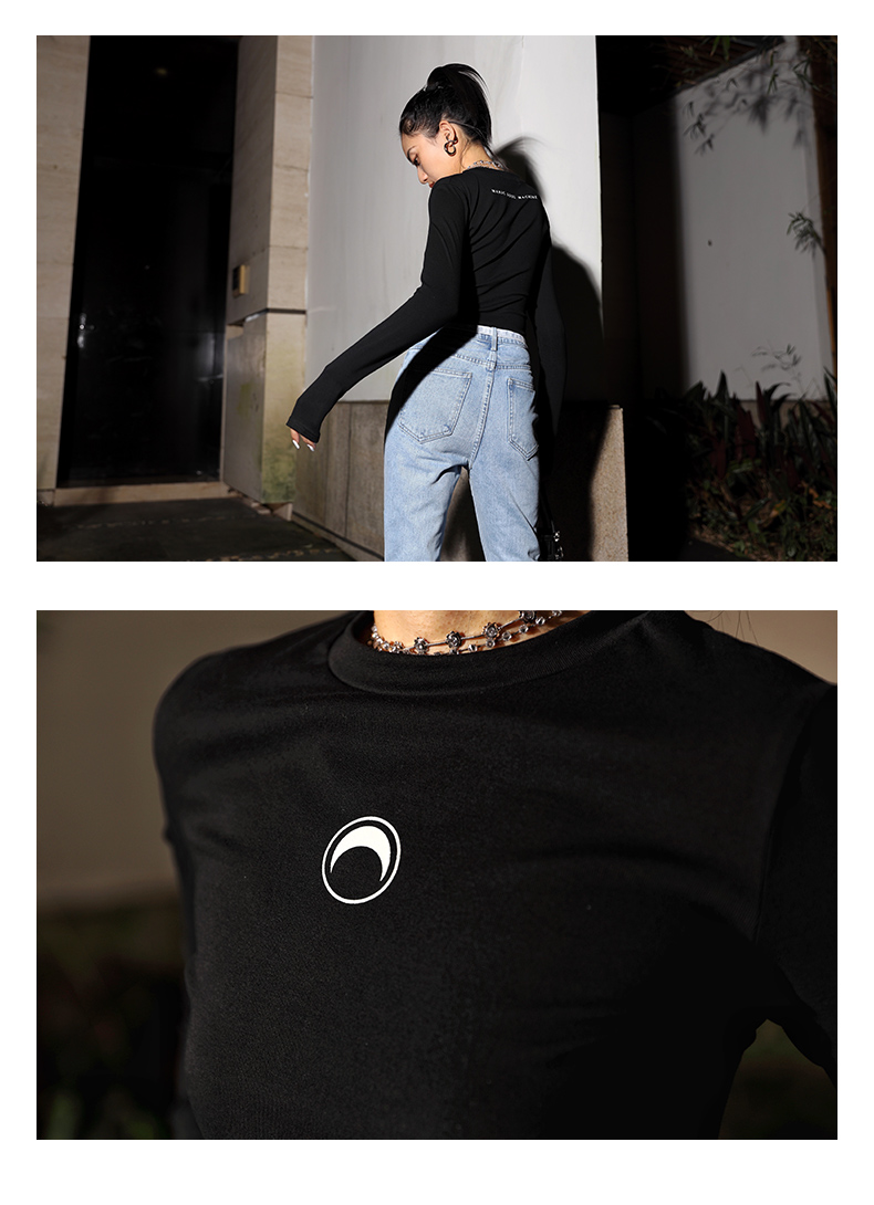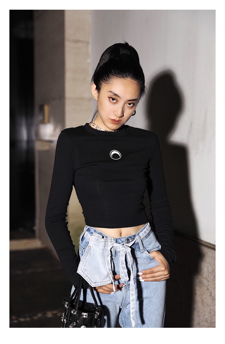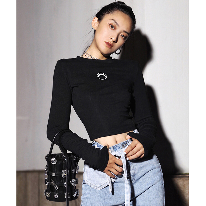 APEA Летний черный короткий лонгслив, приталенная футболка, сезон 2021
