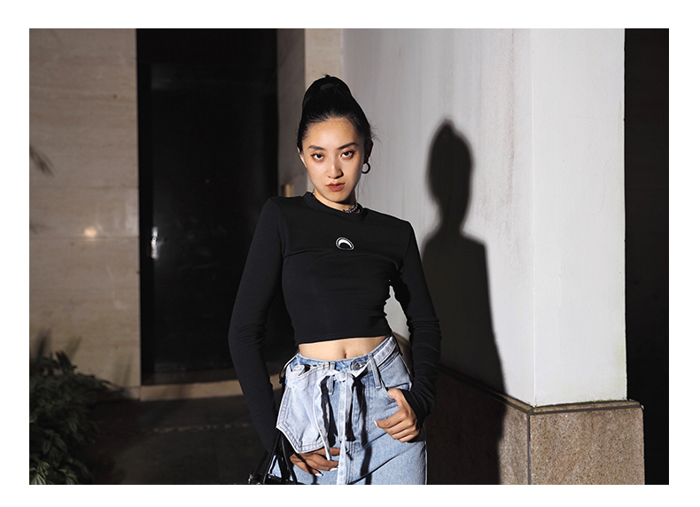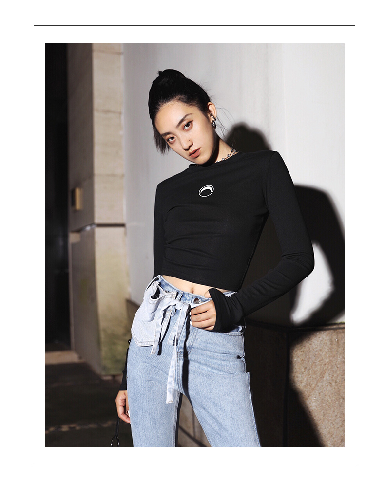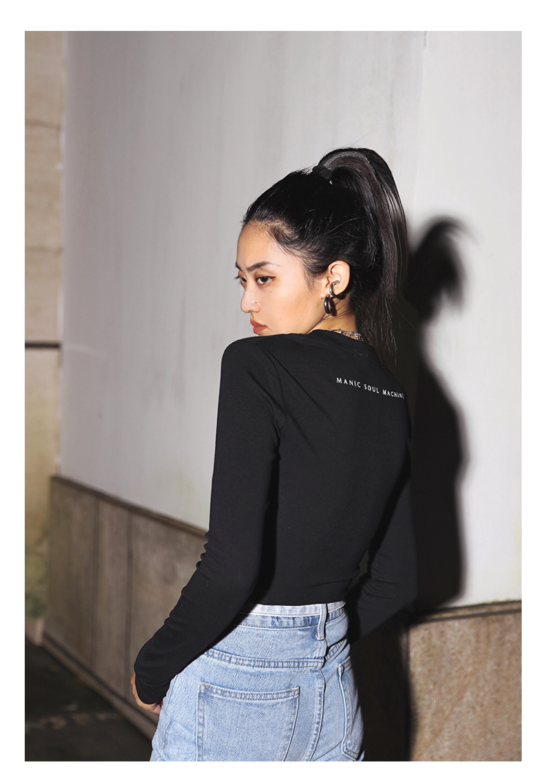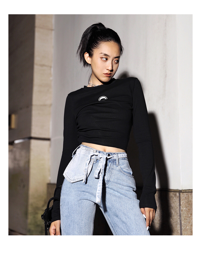 APEA Летний черный короткий лонгслив, приталенная футболка, сезон 2021