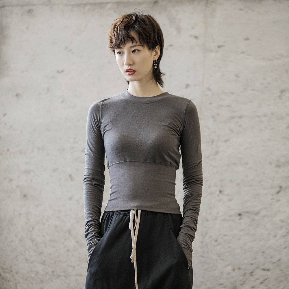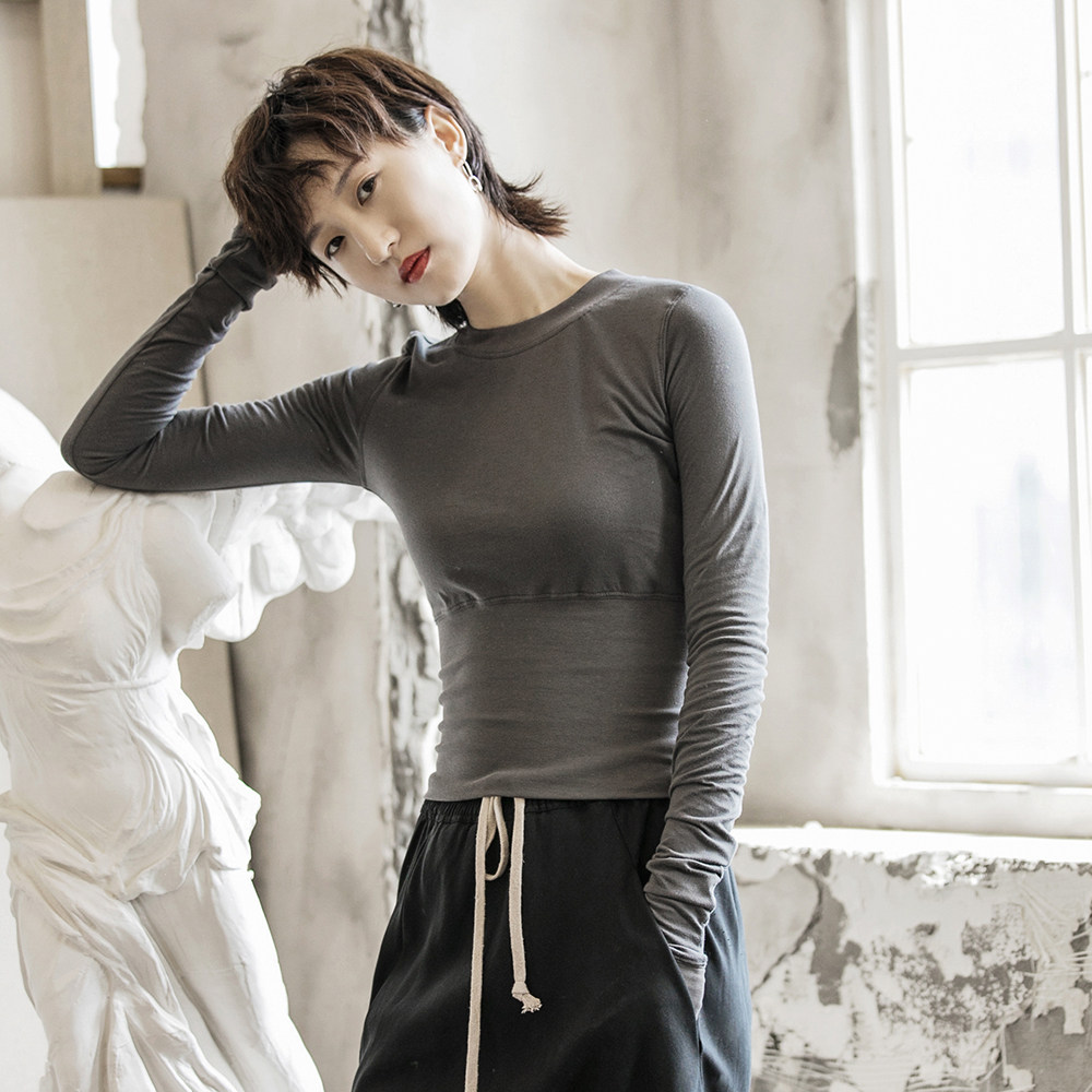 Осенний короткий базовый лонгслив, футболка, облегающий крой, по фигуре