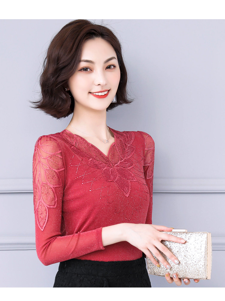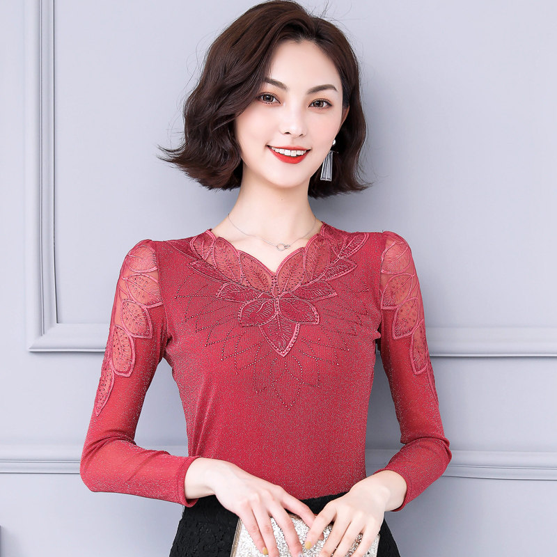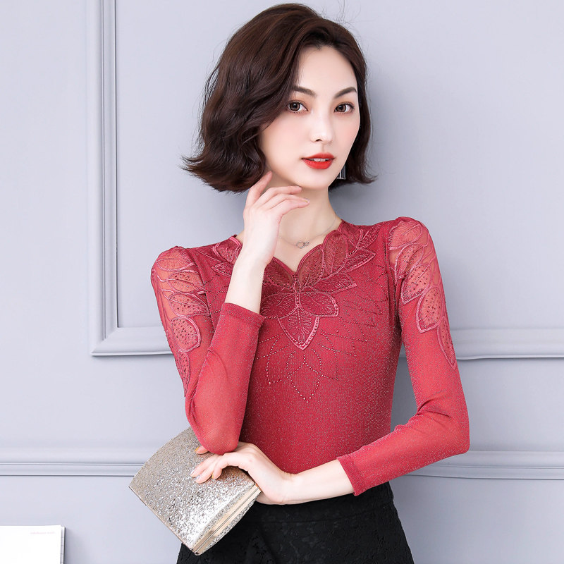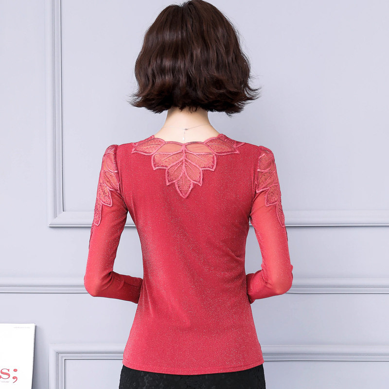 Кружевной шелковый приятный телу осенний лонгслив, коллекция 2022, в западном стиле, облегающий крой