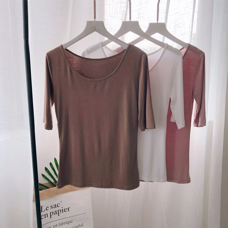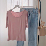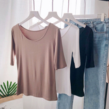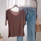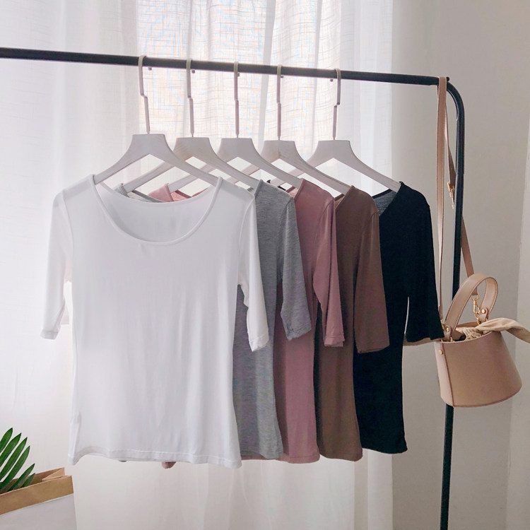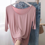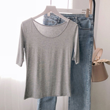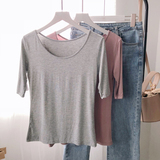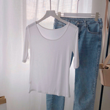 Осенняя приталенная базовая приятная телу футболка с круглым воротником, 2019, в корейском стиле
