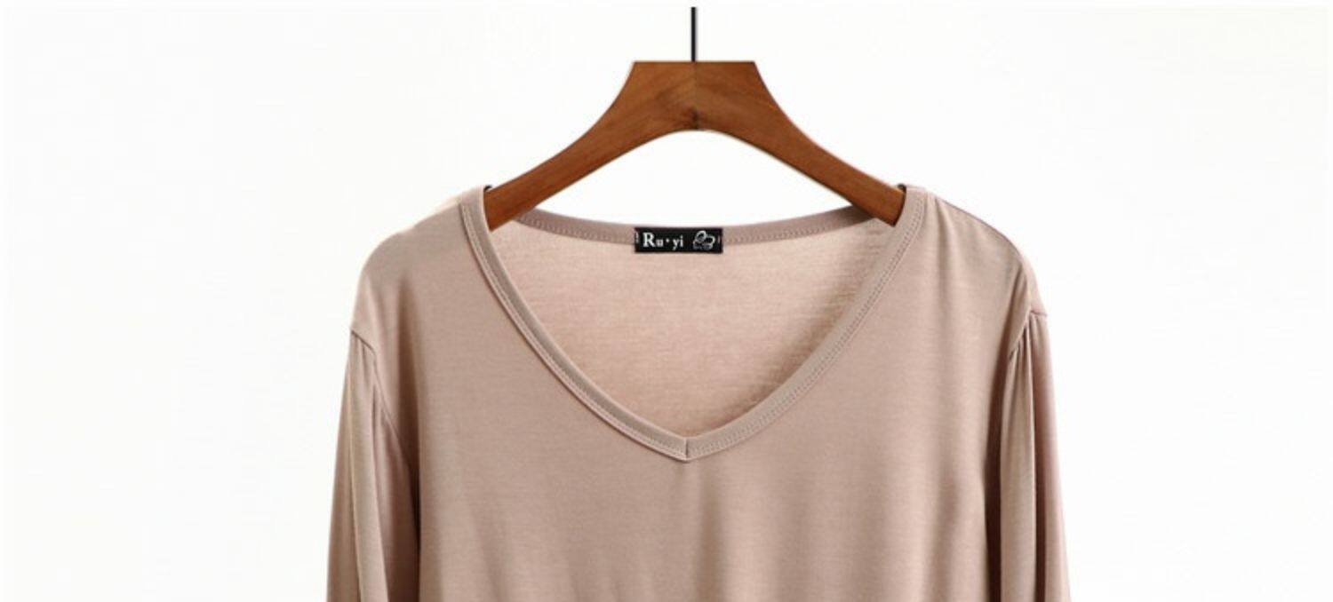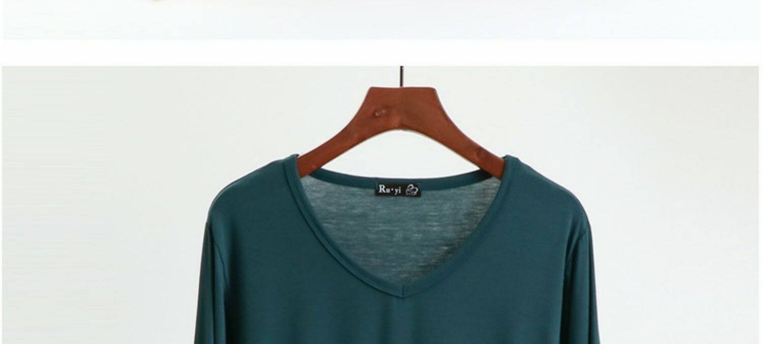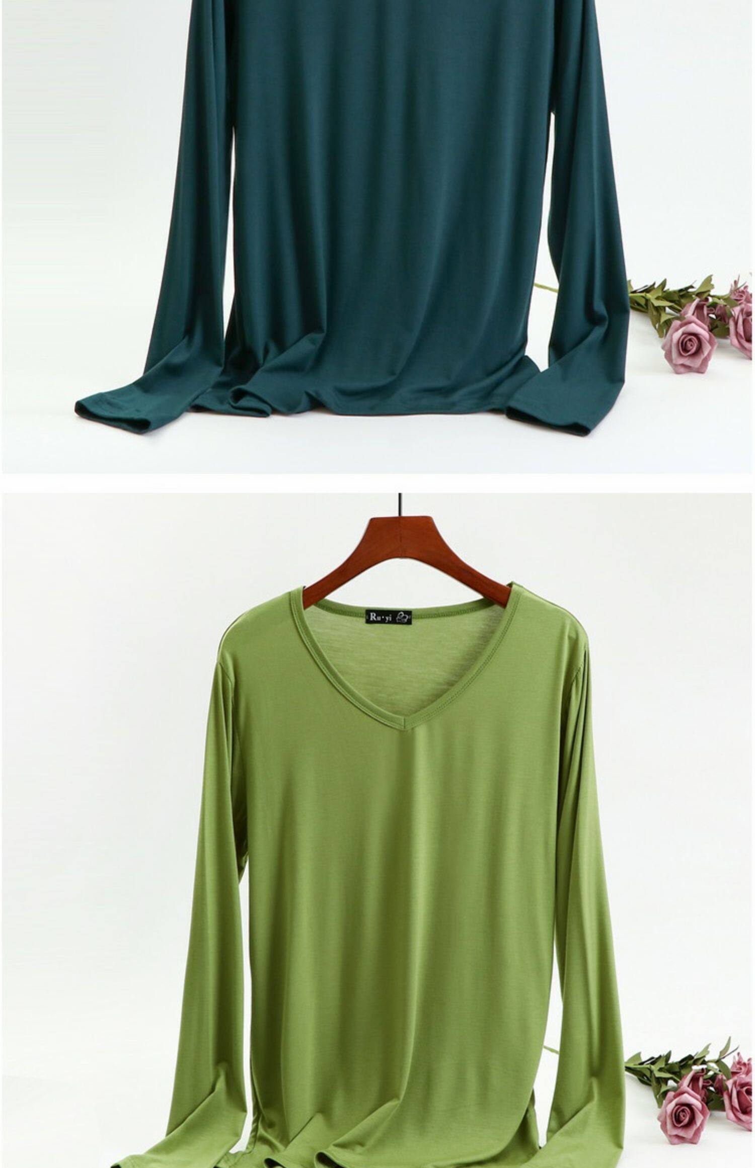 Базовый приятный телу осенний демисезонный лонгслив, цветная футболка, приталенное термобелье, V-образный вырез