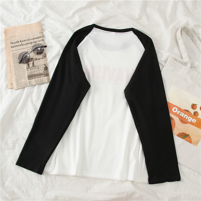 Черное термобелье, демисезонный базовый приятный телу белый лонгслив, оверсайз, в западном стиле