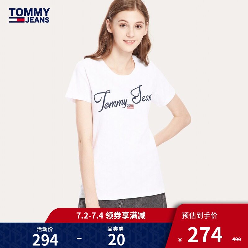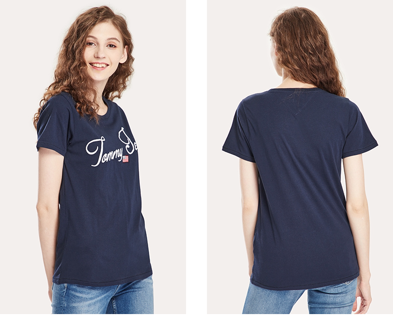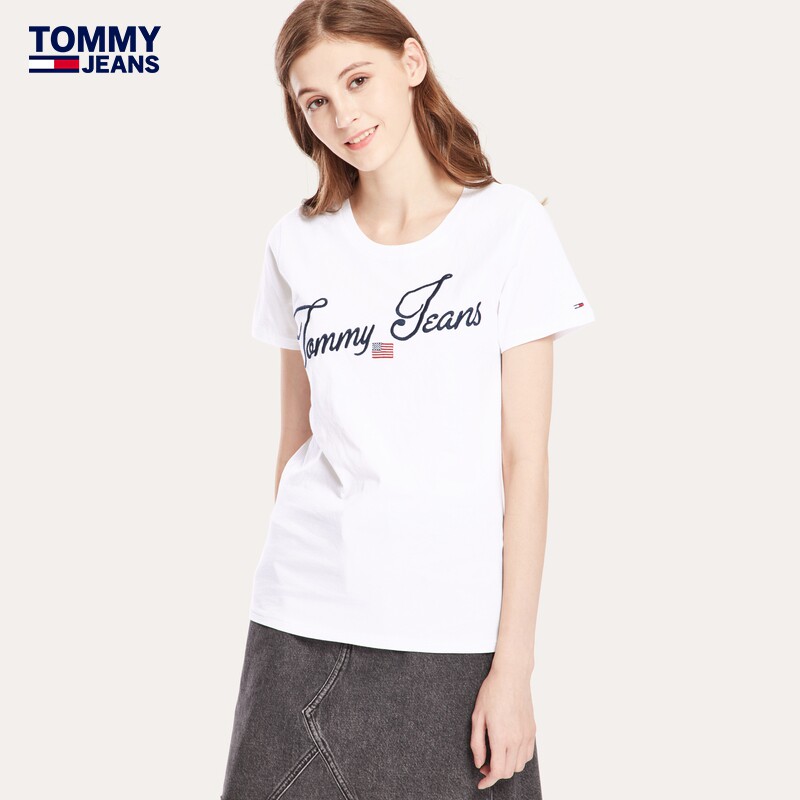 Tommy Jeans Женская одежда круглой шеи писем вышив