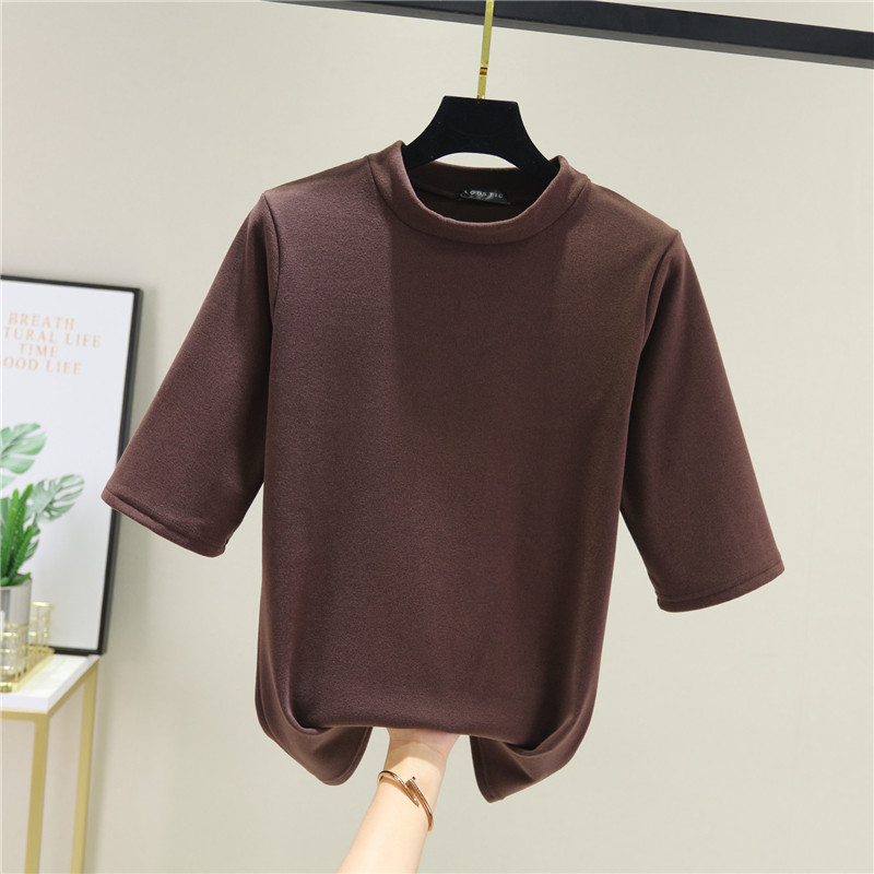 Осенняя базовая приятная телу цветная футболка, высокий воротник, увеличенная толщина, облегающий крой