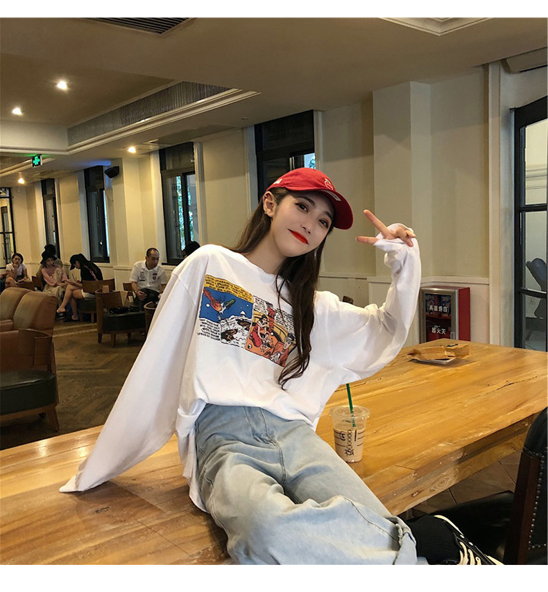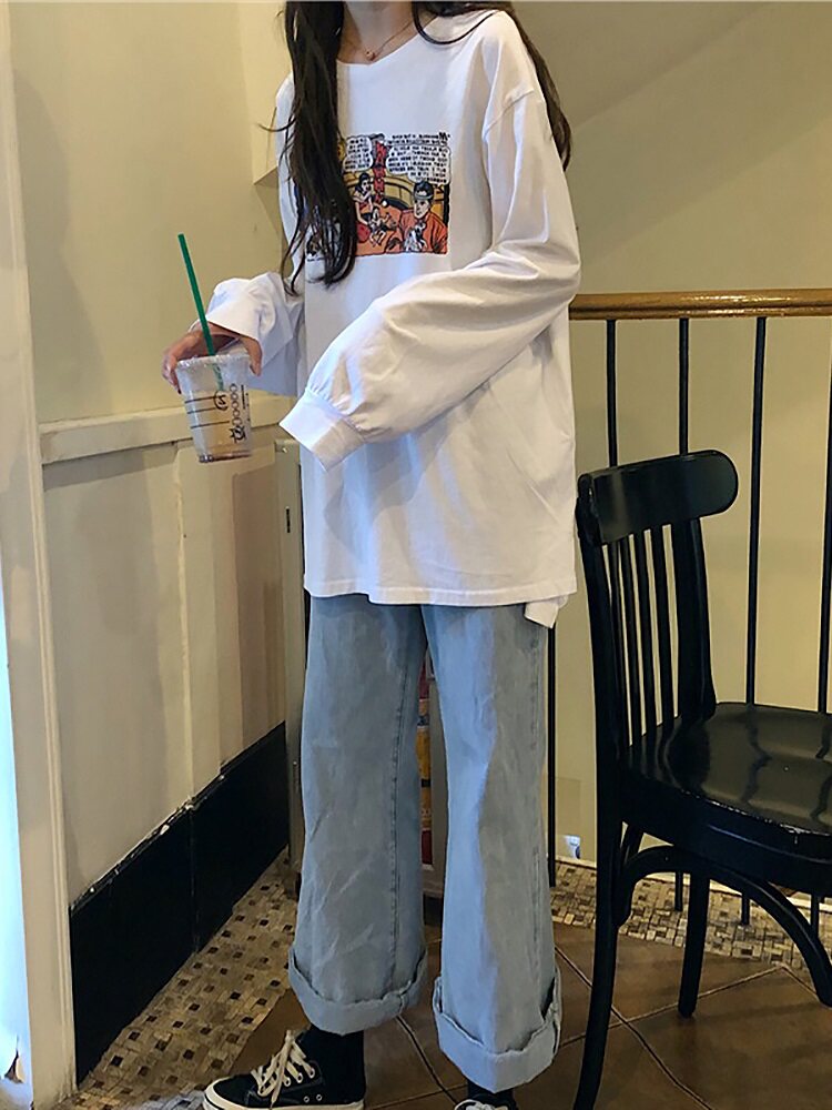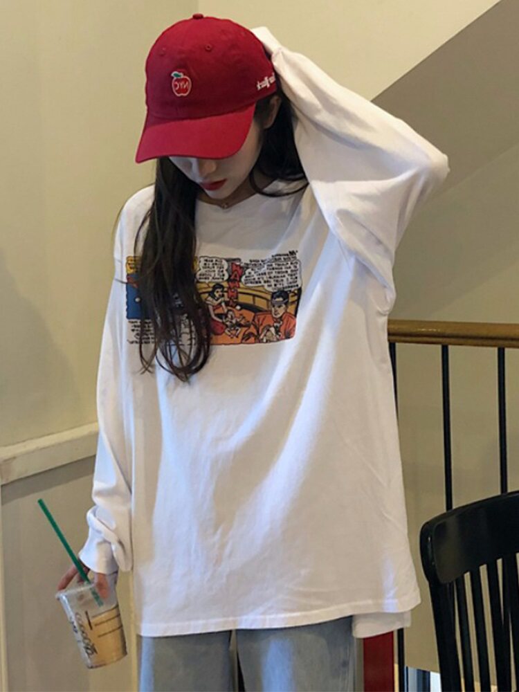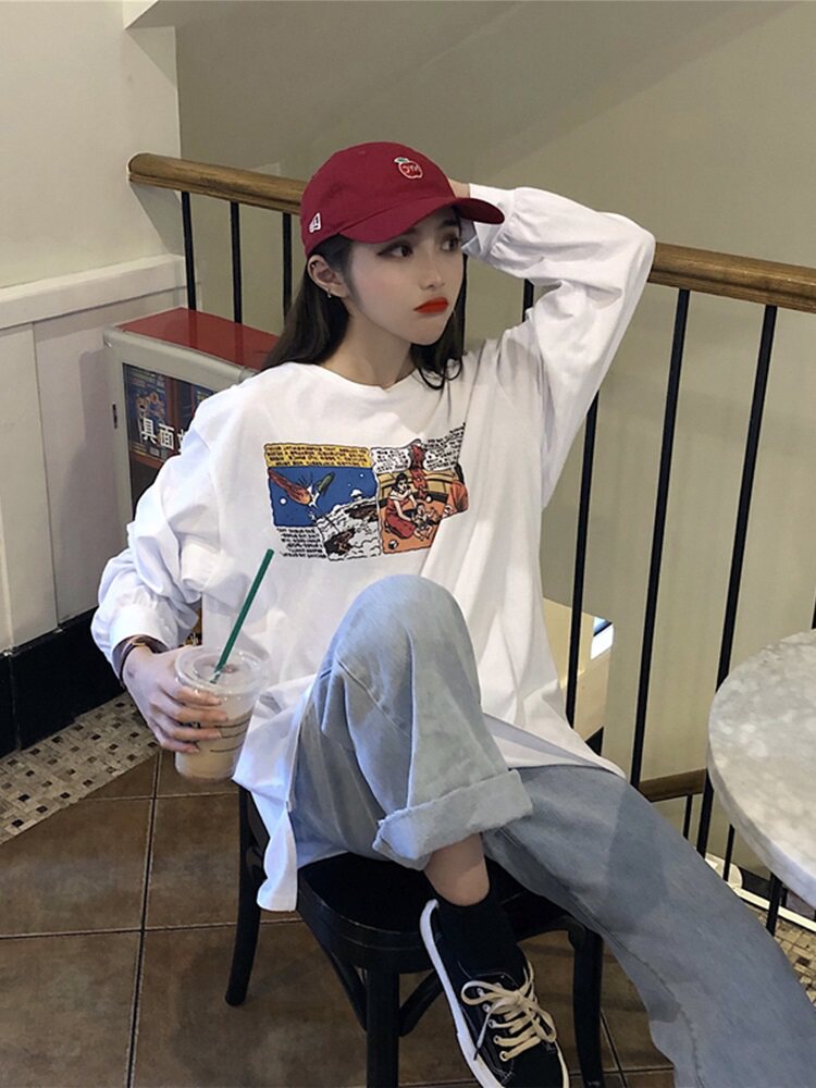 Белая футболка, брендовый длинный ретро лонгслив, в западном стиле, популярно в интернете, средней длины